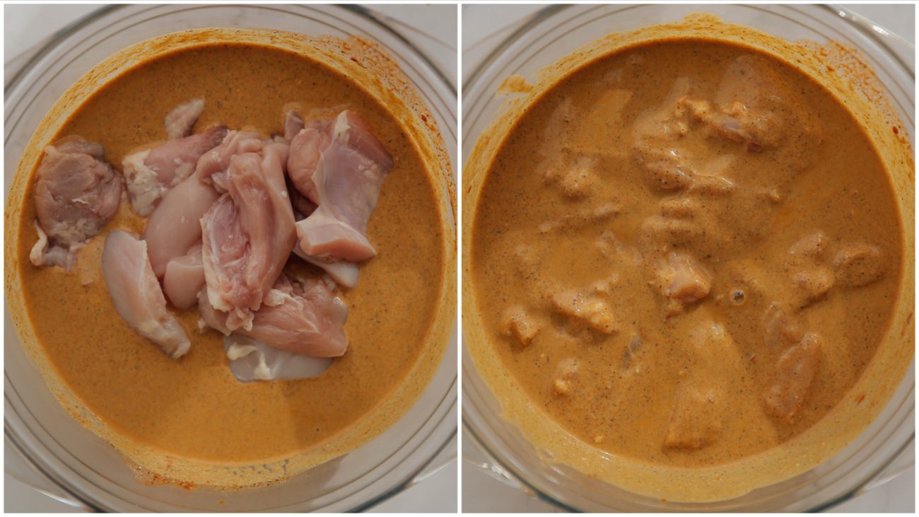 – Marineer de kip voor een nachtje. Bewaar deze afgedekt in de koelkast.