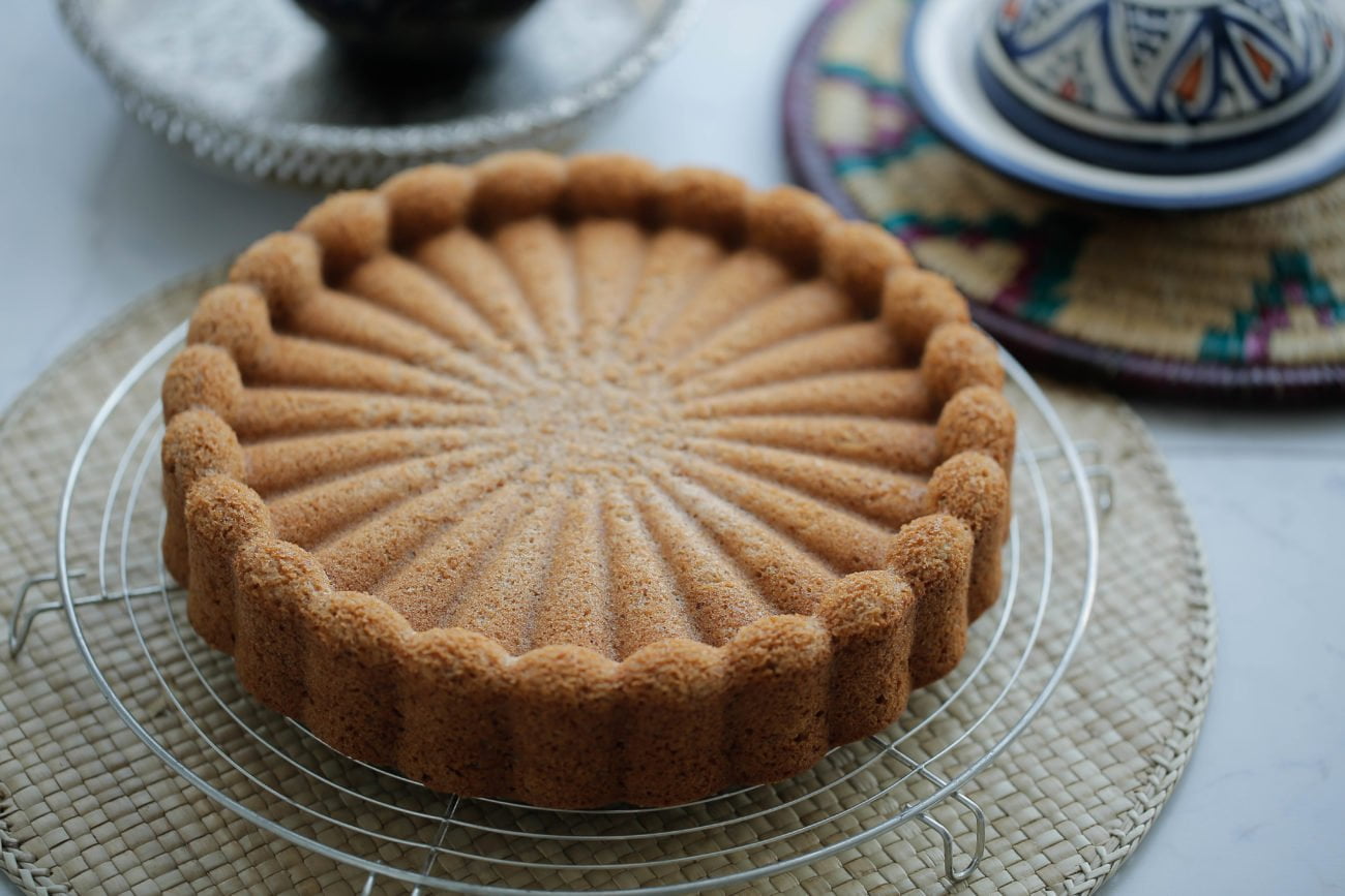 Klop de eieren samen met de suiker, honing en zout op voor een minuut. Voeg de kaneelpoeder, zonnebloemolie, melk, oranjebloesemwater, pinda’s, walnoten, sesamzaad, bloem en bakpoeder toe. Mix alle ingrediënten samen tot een gladde massa.