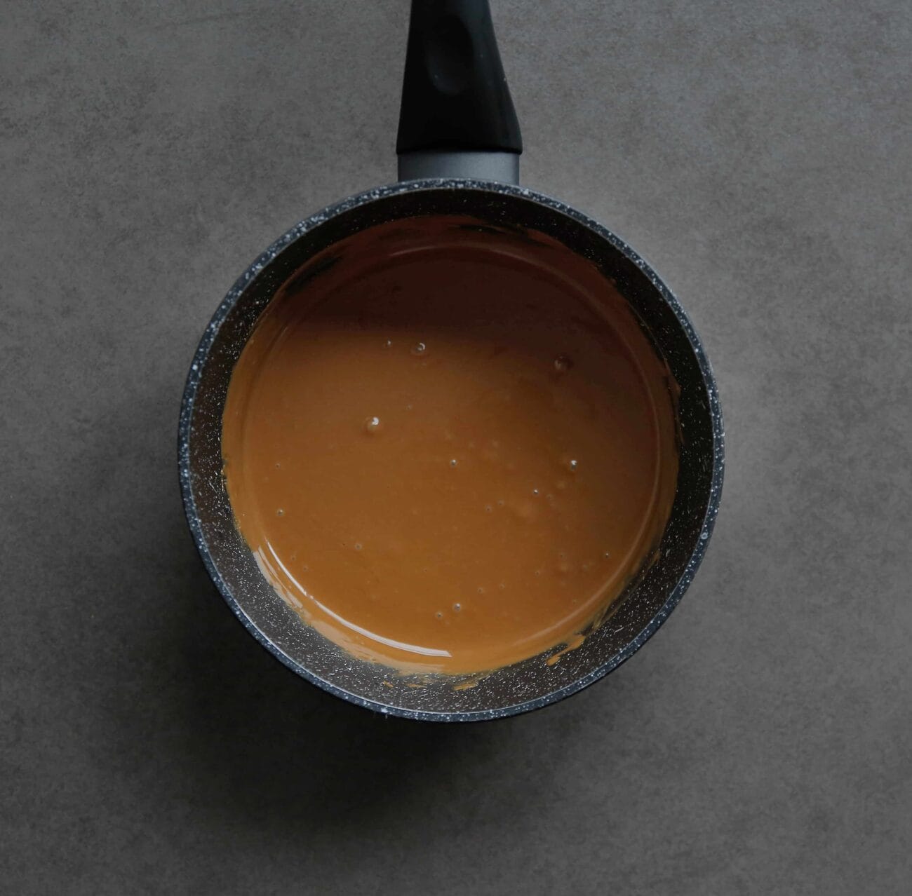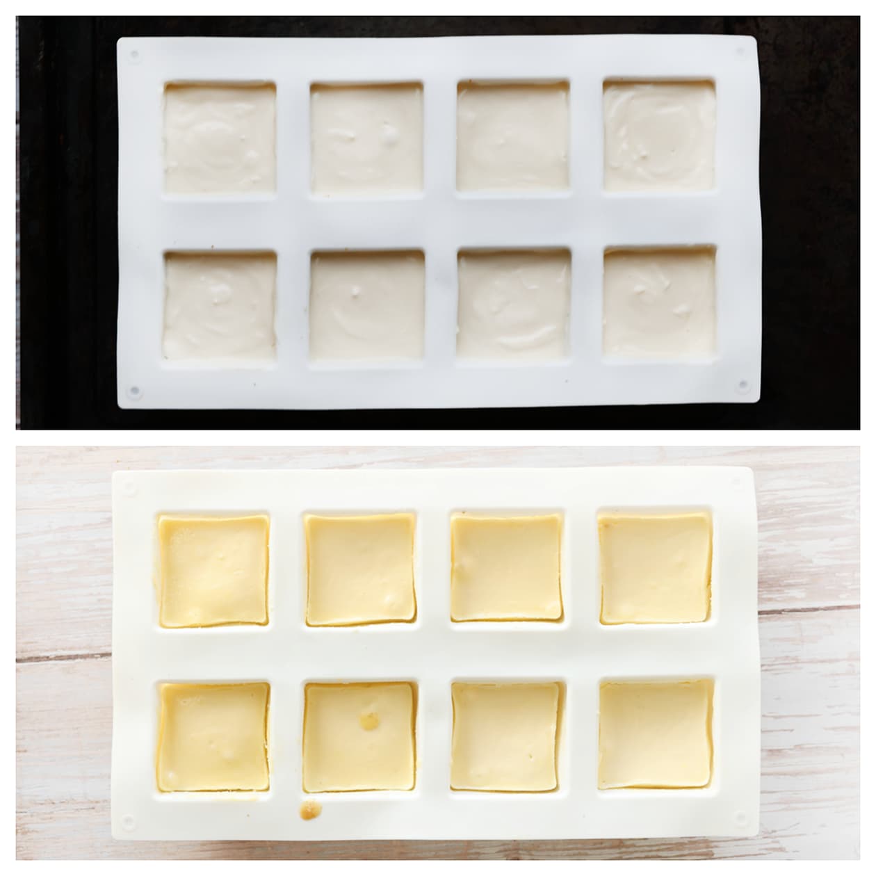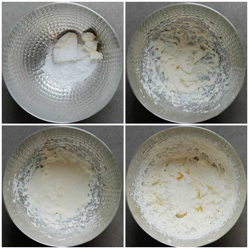 In a deep bowl, combine the cream cheese, crème fraîche, sugar, and vanilla sugar. Mix for 1 minute until smooth. Sift the cornstarch over the bowl. Mix for another minute. Set aside the mixer and use a spatula from now on. Crack the eggs one by one into the bowl. Gently fold the egg into the cheesecake batter using a spatula. |