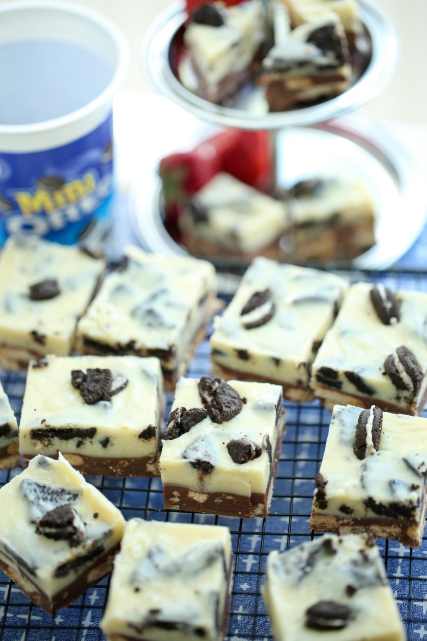Dit is een super eenvoudig en heerlijke recept van Oreo fudge die je zo hebt gemaakt! Het is heerlijk romig, zacht, no bake en gewerveld met Oreo en knapperige biscuits! Heel erg simpel en zo schattig. Dat maakt ze meteen ook de perfecte traktaties!