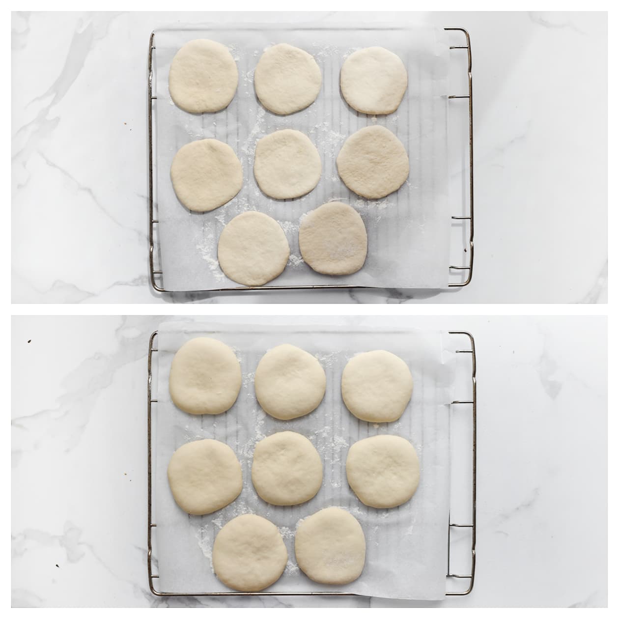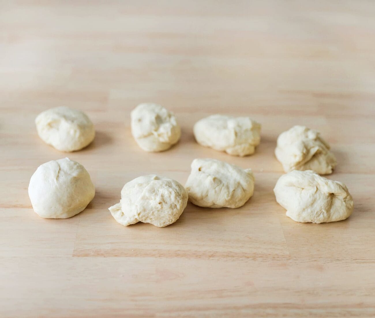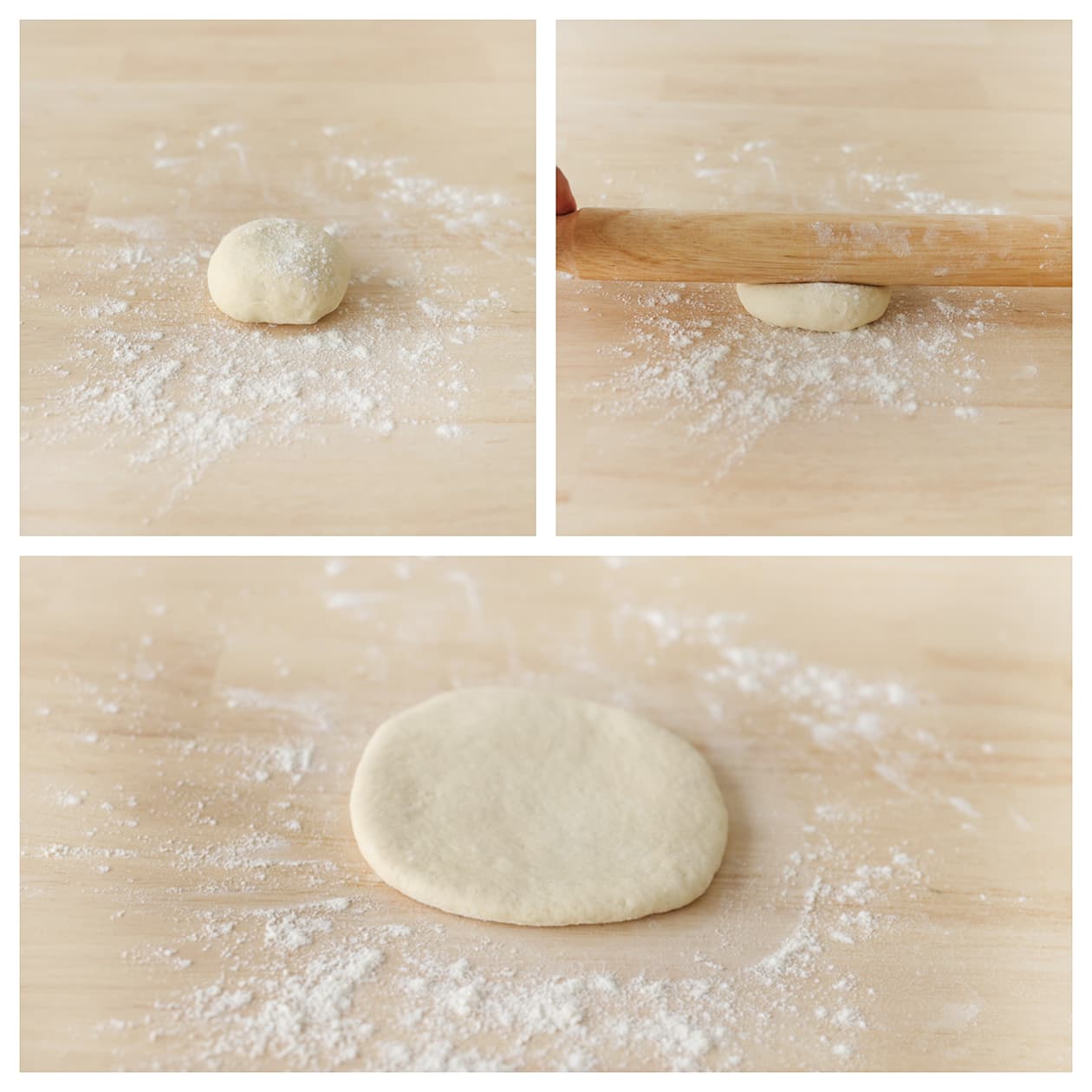 Kneed het deeg lang genoeg (10-12 minuten) zodat het elastisch en soepel wordt. Je kunt ook een keukenmachine gebruiken.