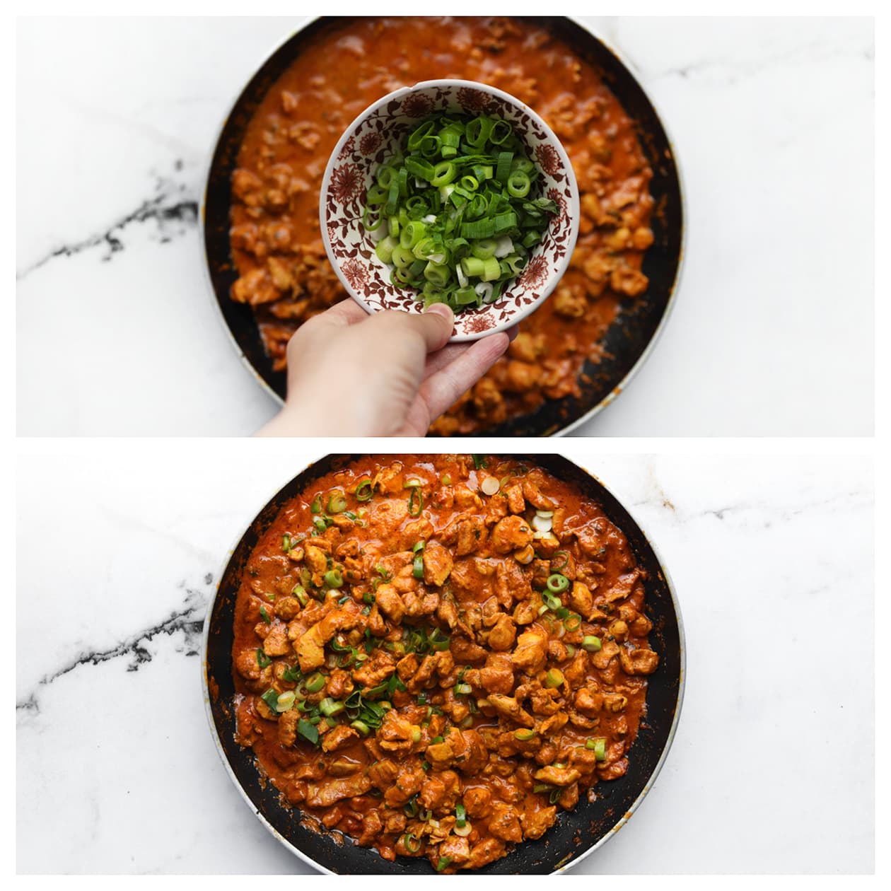 Snijd de kippendijen in gelijke stukken. Kippendijen blijven sappig, maar je kunt ook kipfilet gebruiken als je hier van houdt.