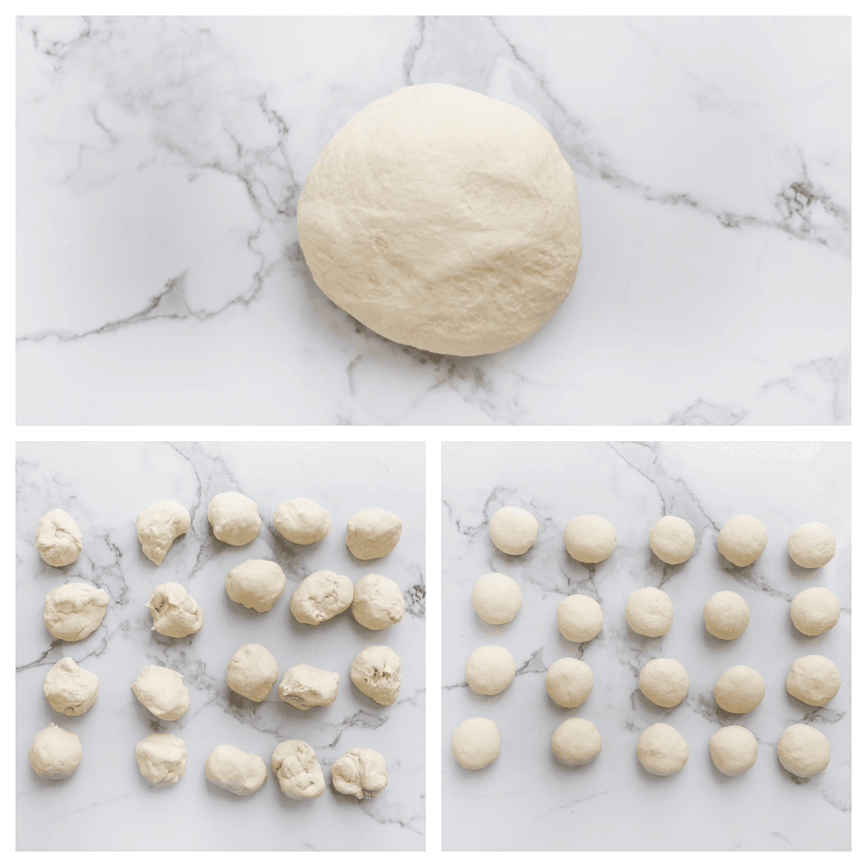Verdeel het deeg in 20 gelijke stukken (37 gr per stuk). Vorm ze mooi rond.