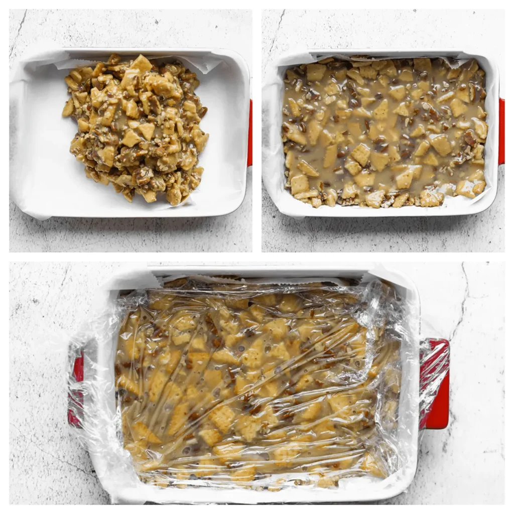 Laat de karamelsaus afkoelen: Nadat je de karamelsaus hebt gemaakt, laat deze even afkoelen voordat je hem aan het koekjesmengsel toevoegt. Dit voorkomt dat de karamel te heet is en de koekjes smelten.