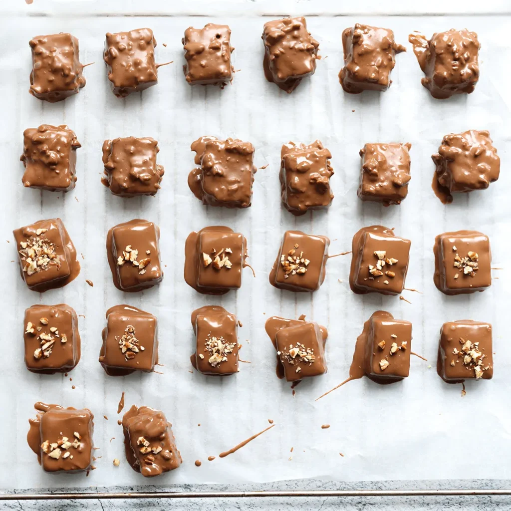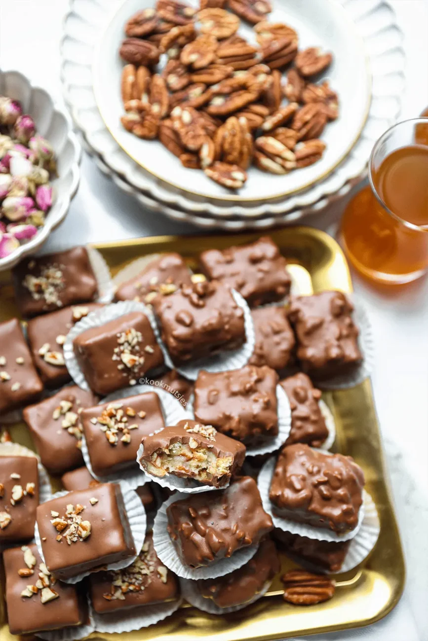 Laatst maakte ik deze makkelijke no-bake pecan-karamelkoekjes, overgoten met melkchocolade, en wat waren ze een hit! Deze eenvoudig te bereiden koekjes combineren de romigheid van karamel met de knapperigheid van pecannoten, én ze vereisen geen oven.