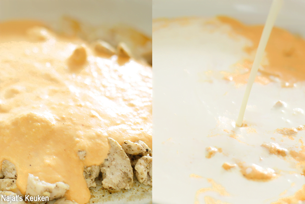 Salaam Najat! Lijkt me heerlijk dit en wil dit vandaag maken. Alleen begrijp ik niet goed of er een verschil is tussen crème fraiche en room? Het ene woord is gewoon de Franse vertaling van het andere, niet? Toch zie ik op de beelden een verschil in consistentie…