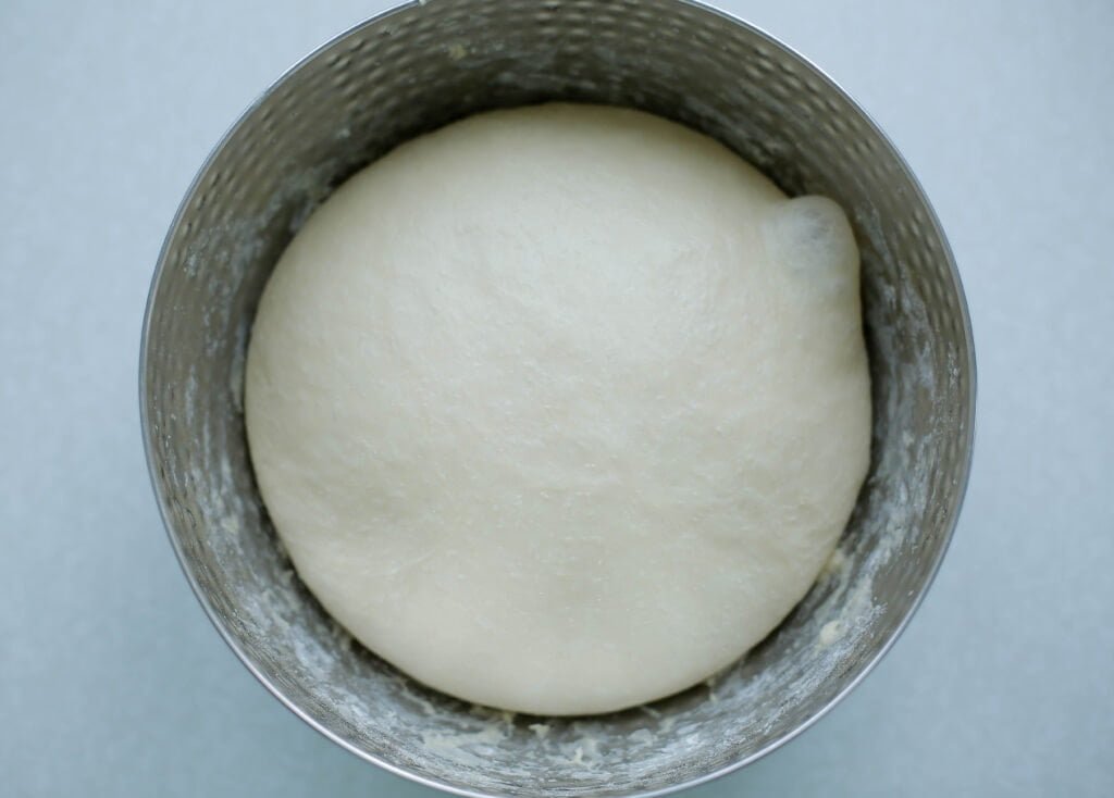 Doe de bloem, gist, zout, zonnebloemolie in een diepe kom en voeg het water toe. Meng goed en kneed samen voor 10-15 minuten tot een samenhangend deeg. |