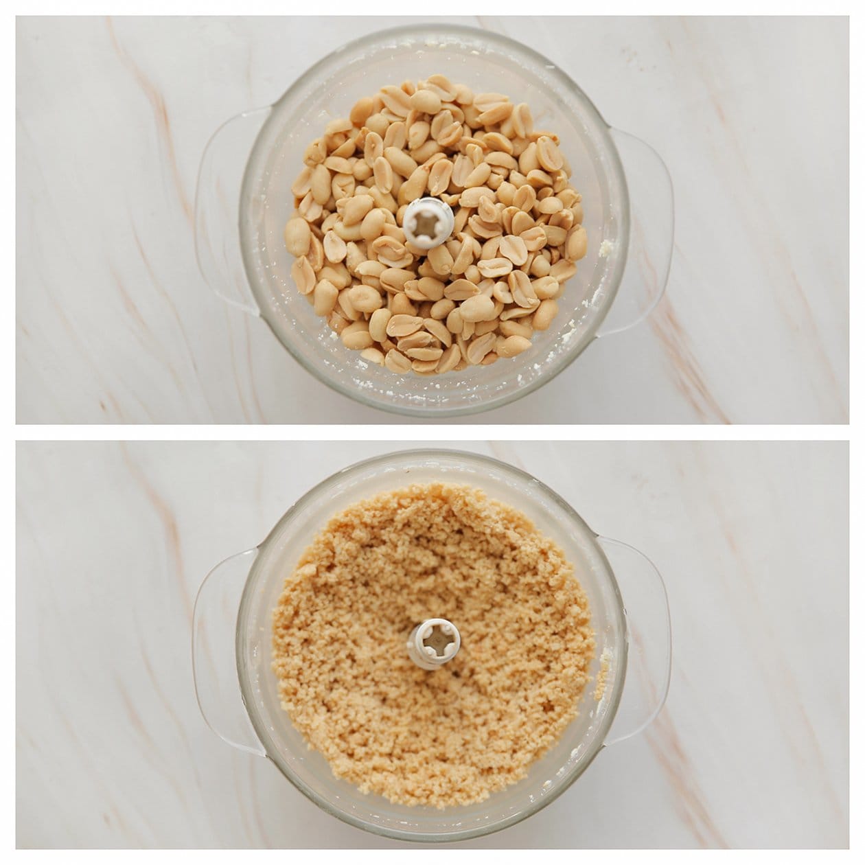 Doe de pinda's in een hakmolen en maal deze niet al te fijn.