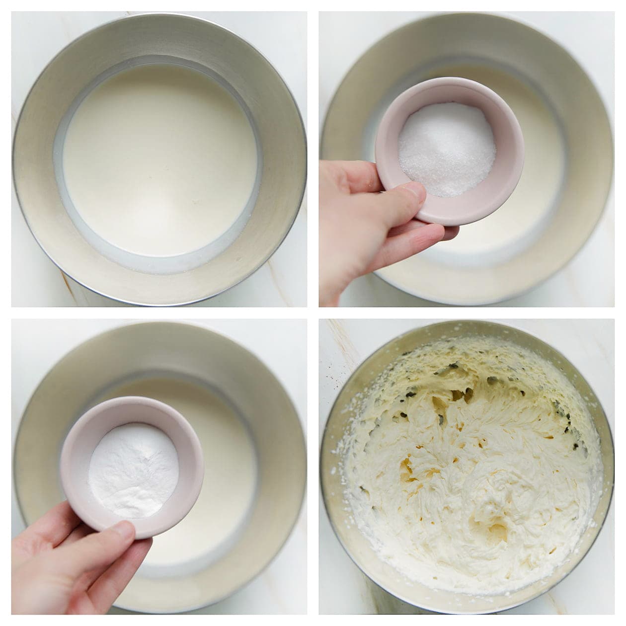 Klop de room tot er zachte pieken ontstaan en stop zodra de room stevig is. Te lang kloppen maakt de slagroom korrelig.