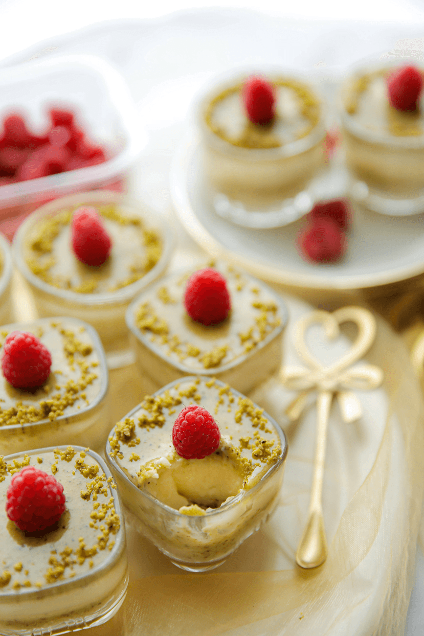 Ben je op zoek naar een heerlijk dessert in glas? Dan zit je goed met dit lekkers van pistachenoten en gele room! Ideaal, want ze zijn echt ontzettend lekker wanneer je iets te vieren hebt en een feestje om naar te kijken! Ze staan leuk op tafel en zijn makkelijk uit te delen!