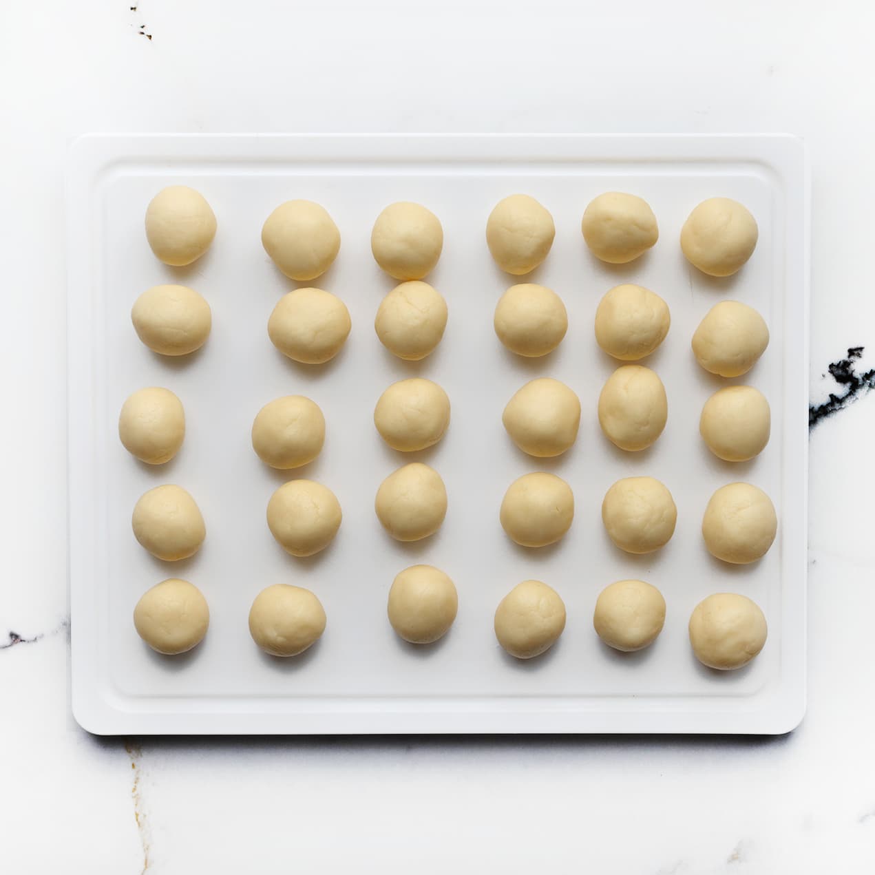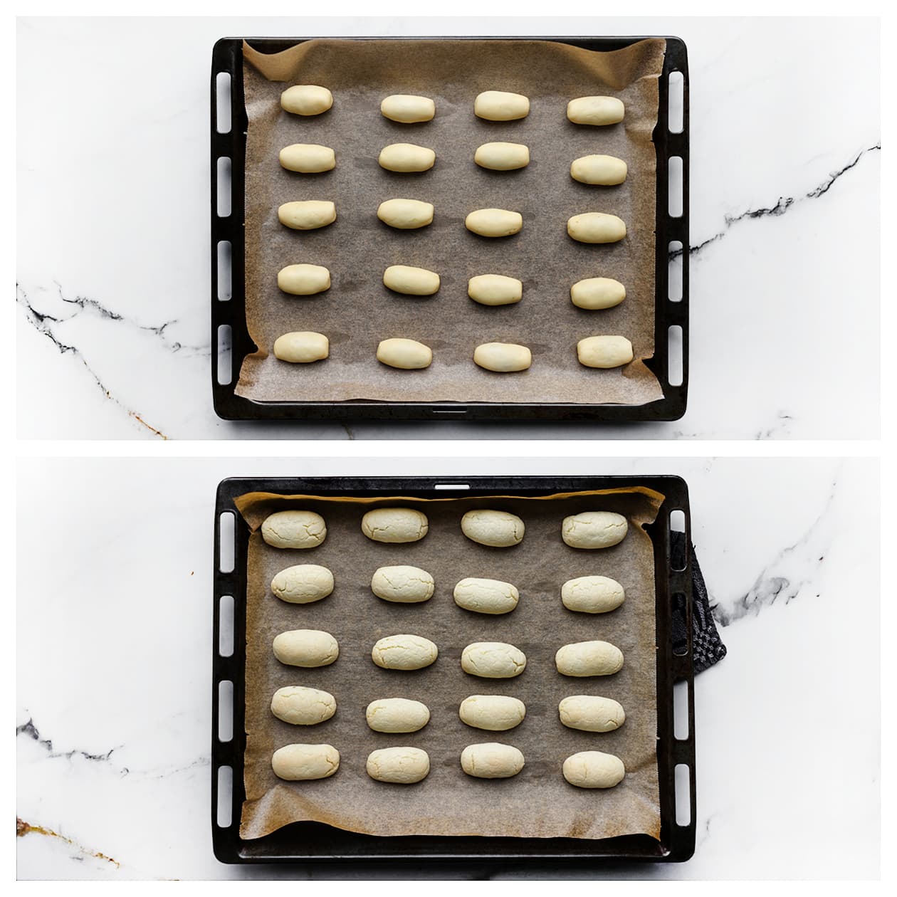 Cornstarch-based cookies do not turn golden brown in the oven but remain quite pale.