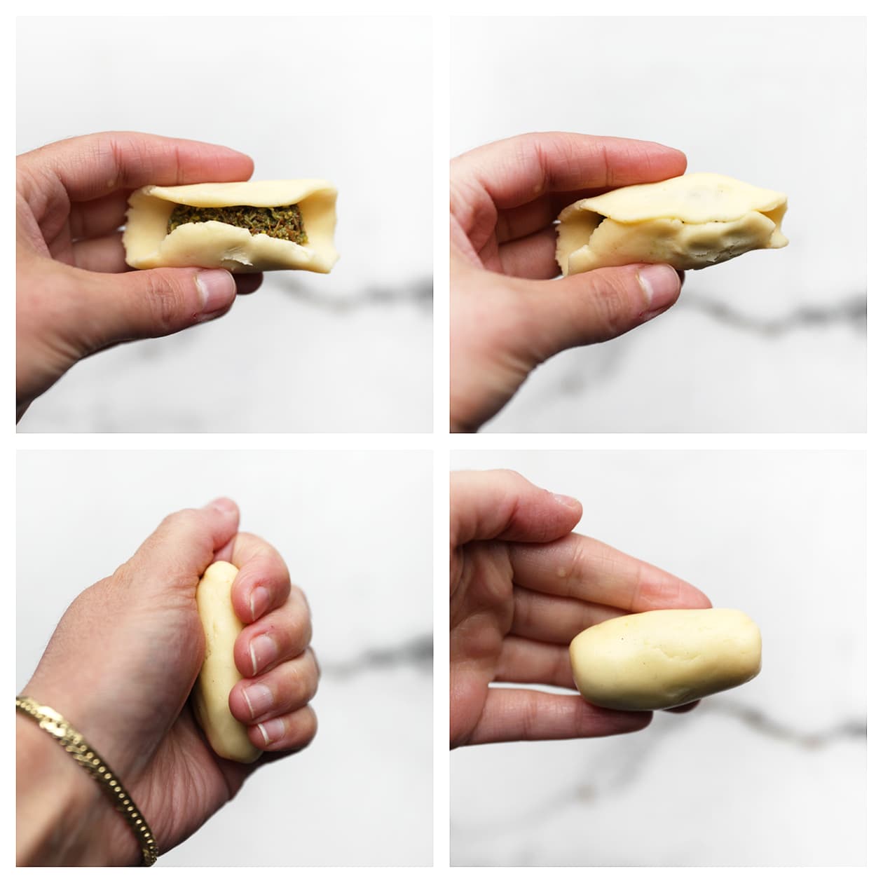 When forming the filling, press it together so it stays compact. This makes it easier to fill the cookies without the filling falling apart.