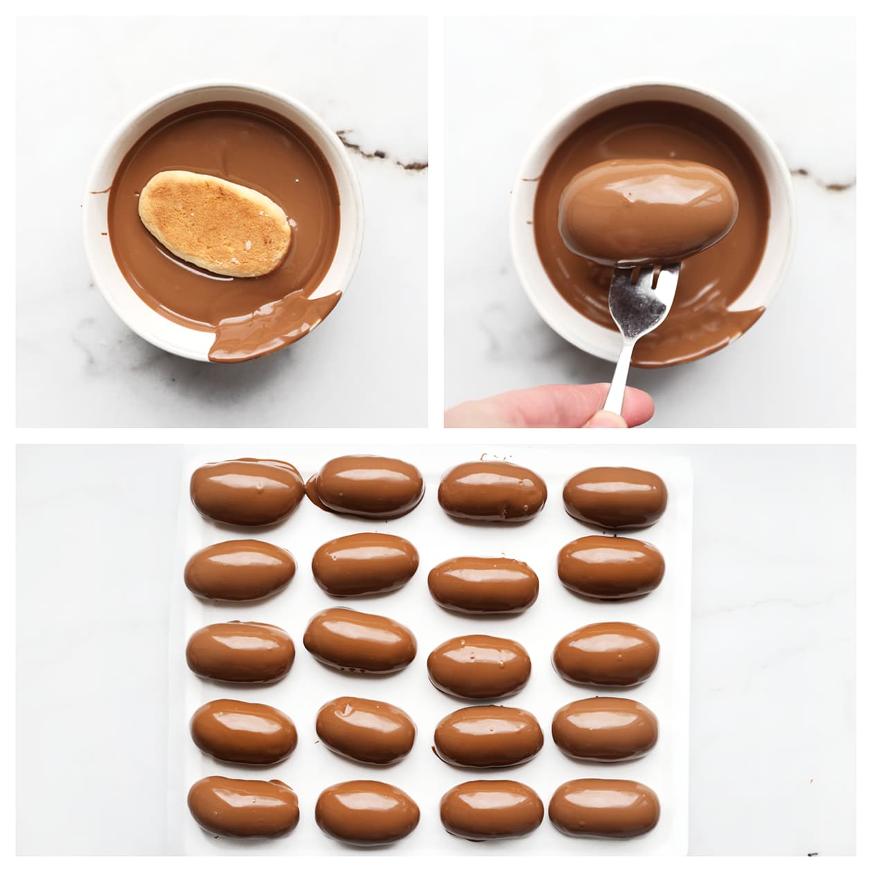 Sprinkle the chopped pistachios immediately after dipping in chocolate so they stick well.