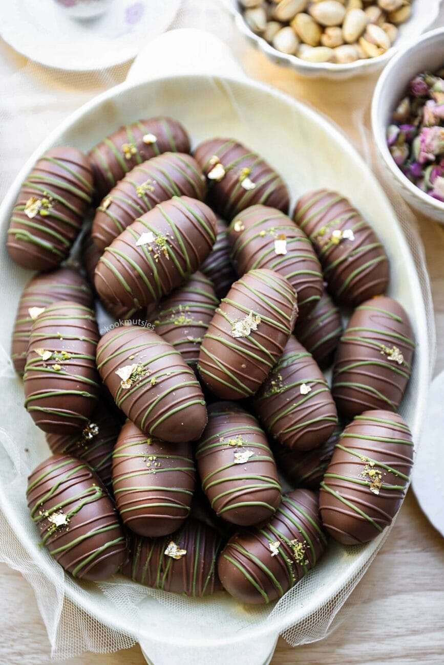 If you love cookies, pistachios, and chocolate (and honestly, who doesn’t?), then buckle up because these cookies are about to change your life. Imagine biting into a soft, melt-in-your-mouth cookie, only to be surprised by a crunchy, nutty, and slightly caramelized pistachio filling. Oh, and did I mention they’re coated in silky milk chocolate and topped with edible gold? Yep, these cookies are basically luxury in bite-sized form.