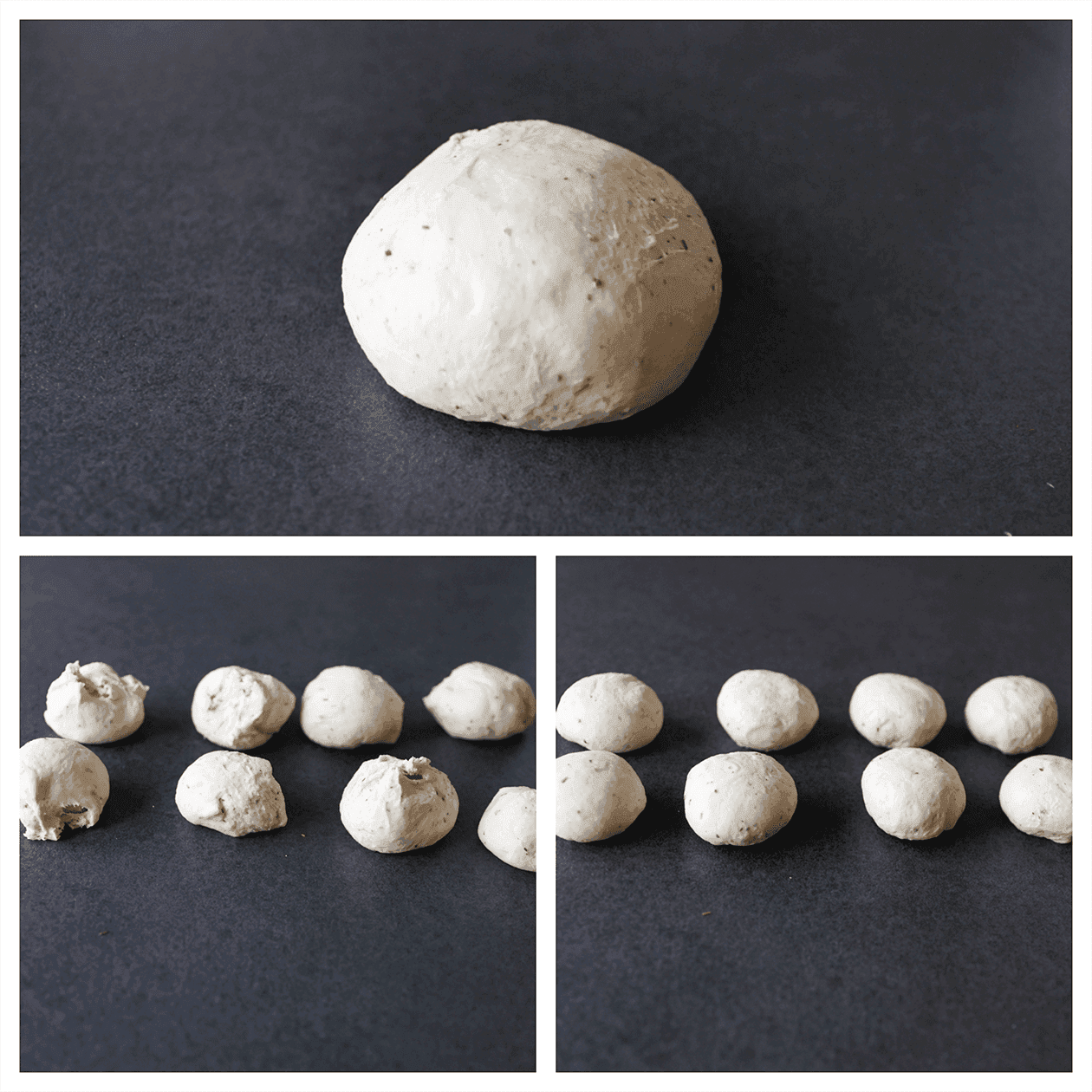 Verdeel het deeg in 8 porties (82 gr per stuk) en vorm ze mooi rond.
