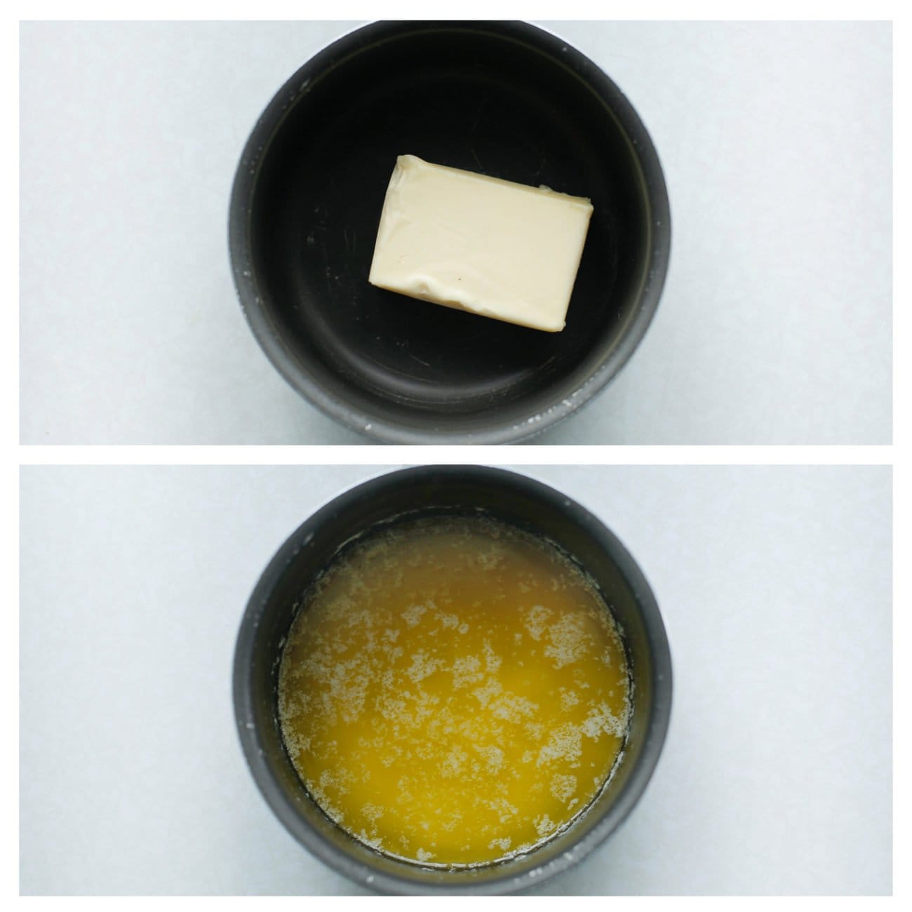 Breek de eieren boven de kom. Voeg de suiker en vanillesuiker toe en mix gedurende 1 minuut. Voeg de melk, gesmolten roomboter en zonnebloemolie toe. Mix tot een gladde massa. Zeef de bloem en het bakpoeder boven de kom en mix tot een geheel. |