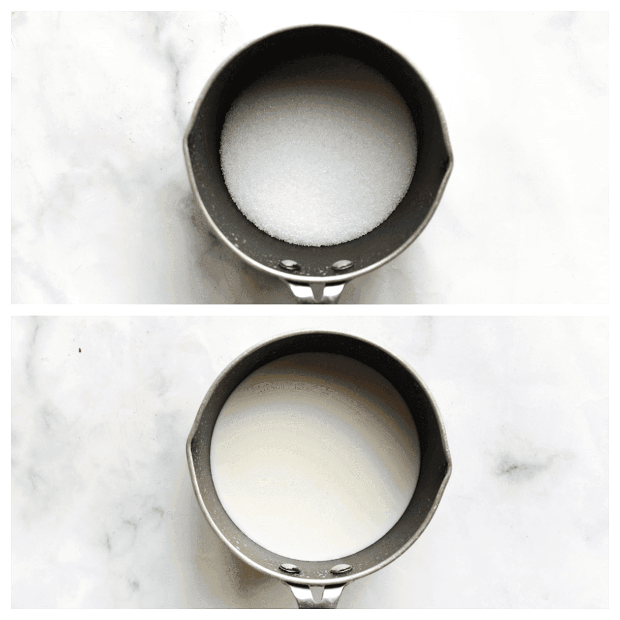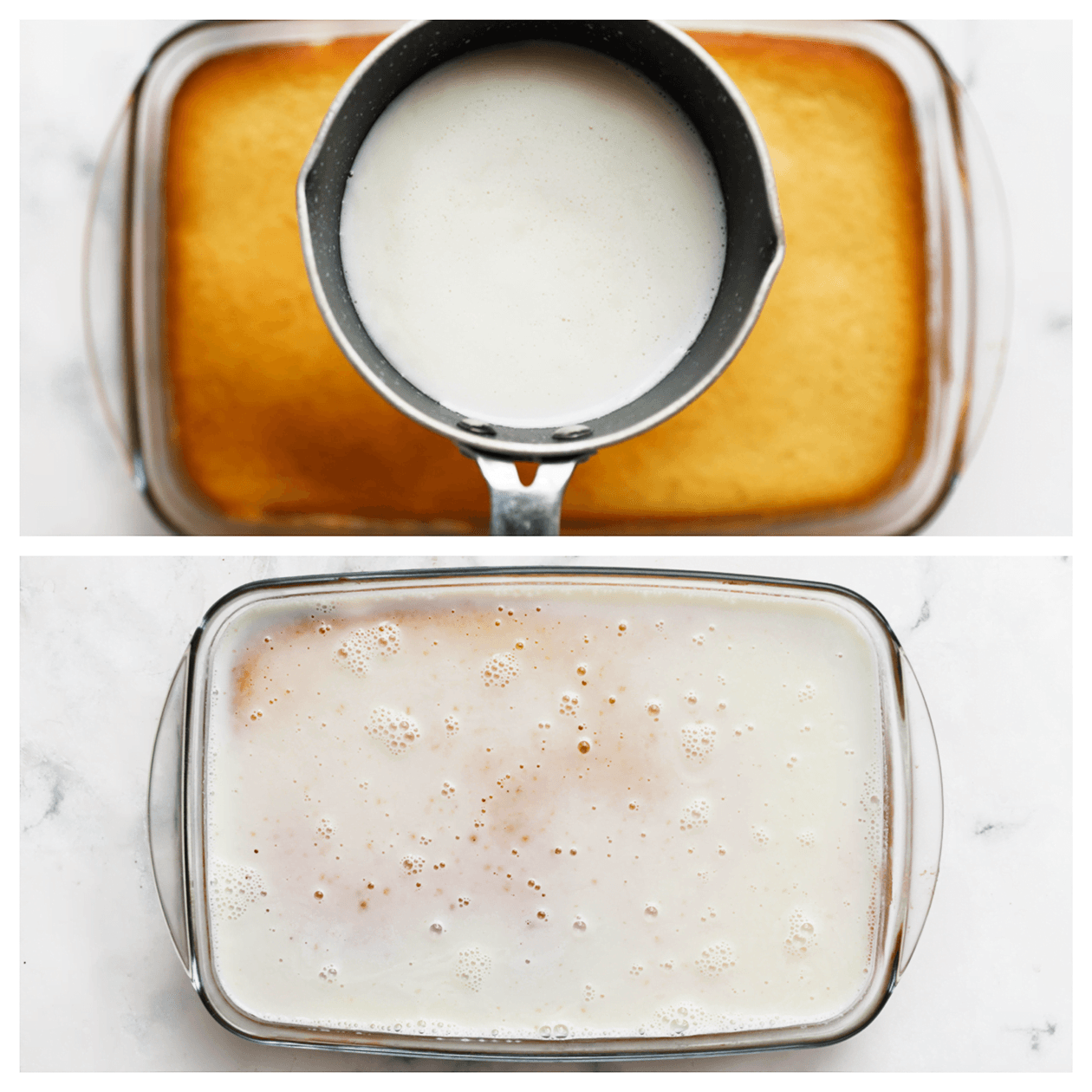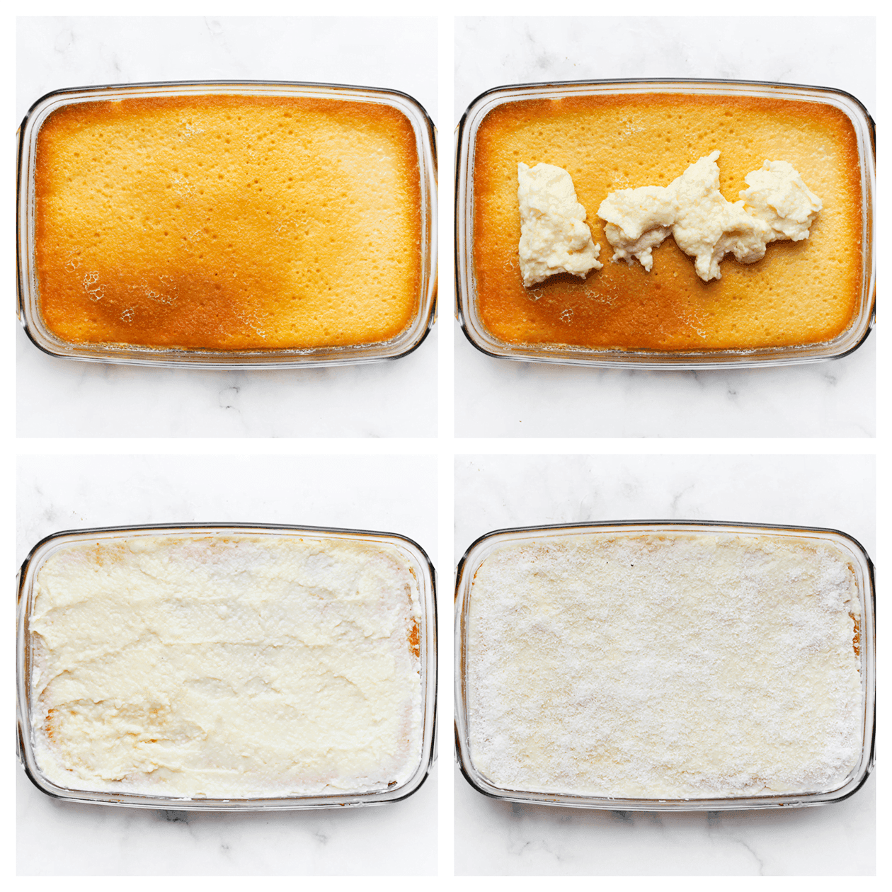 Heat the milk in a pan with sugar, vanilla sugar, and cornstarch over medium heat. Stir constantly. When the mixture starts to thicken, add the heavy cream and mix well. Remove from heat. Add the broken white chocolate pieces and let it sit for 1 minute. Stir until fully dissolved. Add the grated coconut and mix well. Divide the coconut mixture in half and let it cool. |