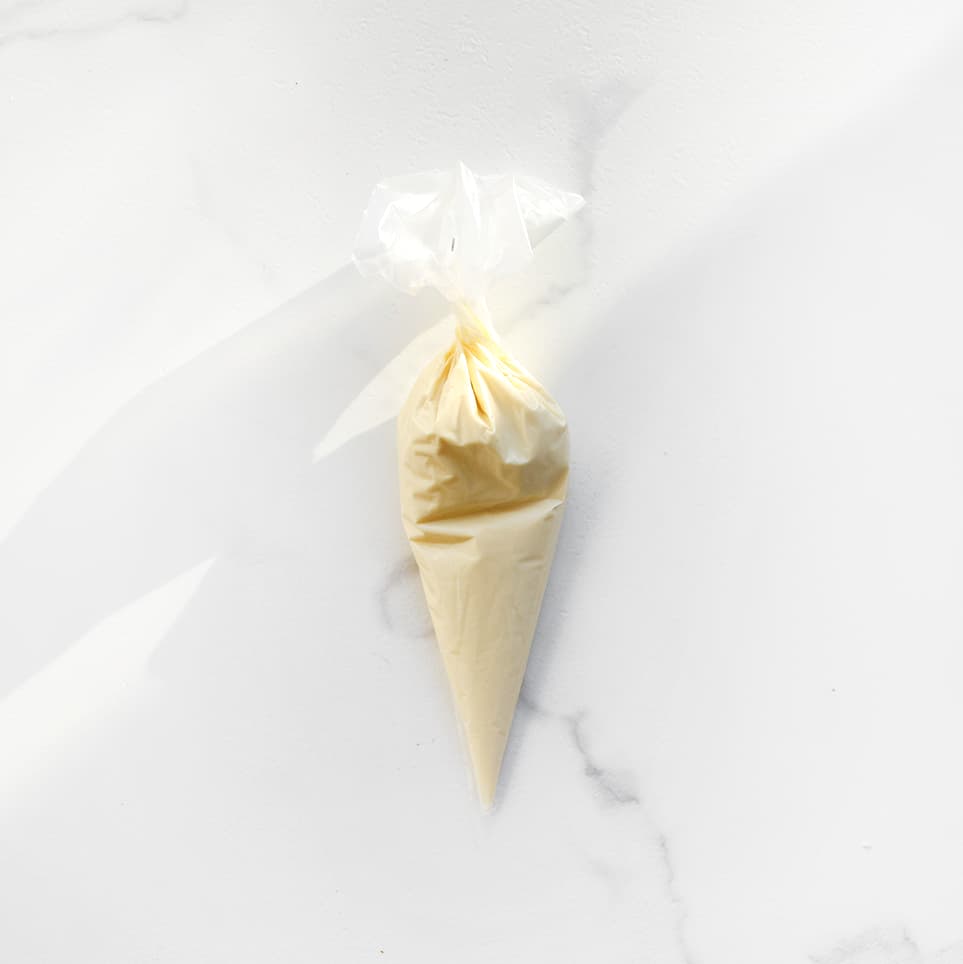 Don’t have a piping bag? Use a sandwich bag or resealable plastic bag and cut a small tip to pipe the raspberry juice.