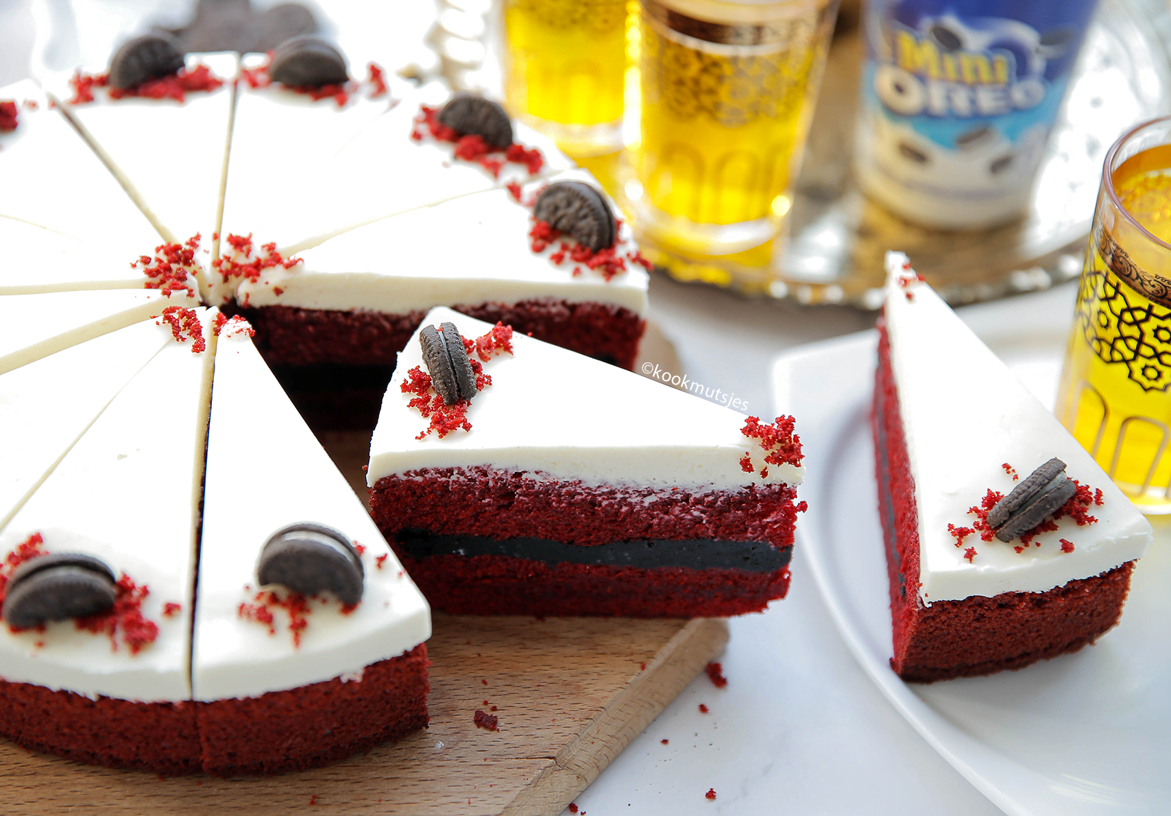 Don’t you just love red velvet? Deze red velvet cake met een zachte oreo-vulling is het perfecte dessert als je indruk wilt maken! De cake is zacht, smaakvol en heeft zo’n romige chocolade topping! Mega lekker!