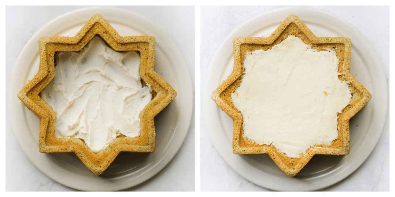 Neem de bakvorm en gebruik dit keer de andere kant. Gebruik bakpapier zodat je de cheesecake er makkelijk uit kunt tillen. Voeg het cheesecakebeslag toe. Zet de cheesecake in een voorverwarmde oven op 125 ℃. Bak 35-40 minuten of tot de zijkanten stevig zijn en de binnenkant lichtjes wiebelt. Schakel de oven uit en laat de cheesecake een uur in de oven met de ovendeur dicht. Leg, afgedekt, in de koelkast om stevig te worden. Het liefst een nachtje. |