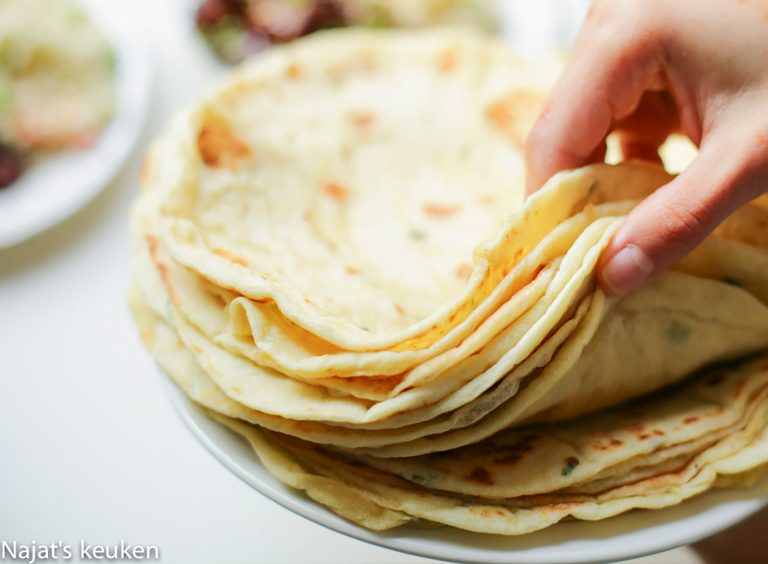 Hoi Najat, heb je ook een roti(plaat) recept zonder de aardappel meteen door het deeg? Zoals de Surinaamse/Hindoestaanse roti? Dan gaat er een lepel aardappelmengel in een balletje deeg die je daarna uitrolt. Sommige doen i.p.v. een aardappelmengsel een mengsel erwten. Lijkt me super als je daar ook een recept van hebt.