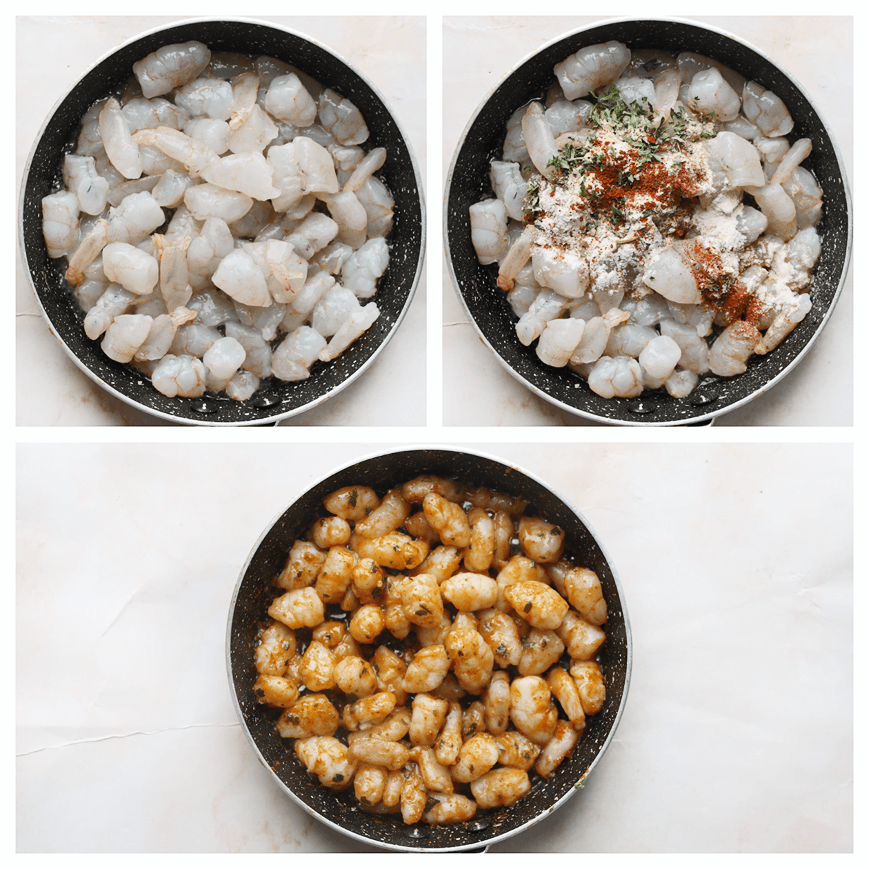 Vervang de garnalen door kip of geroosterde groenten. Voeg kruiden toe naar wens.