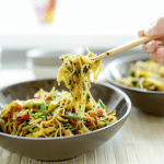 Snel, makkelijk en lekker vegetarisch, dat moet wel spaghetti met groenten zijn! Ik ben dol op de eenvoud van zulke maaltijden en iedereen is altijd zo gek op. Dit is ontzettend lekker dat je je niet eens realiseert dat dit gerecht vol zit met voedzame groentes!