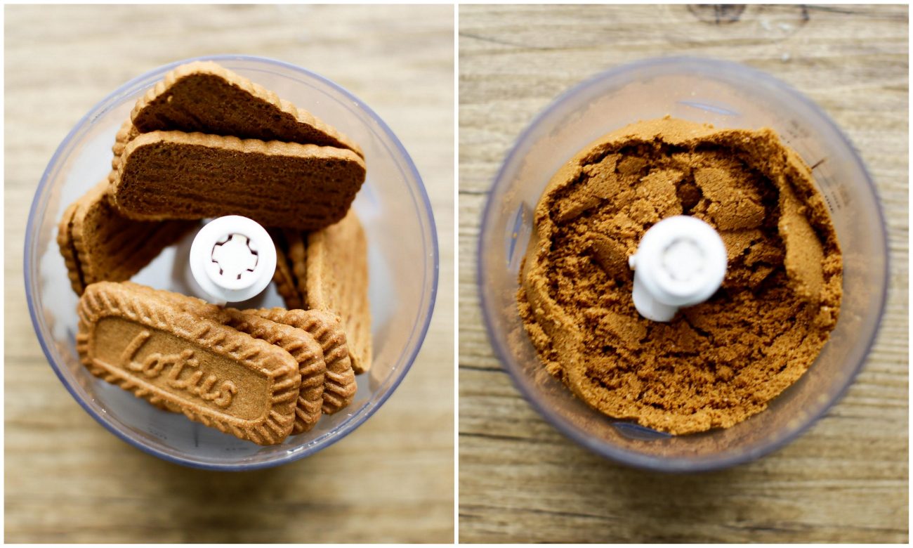 Doe de Speculoos koekjes in mixer en mix het fijn.