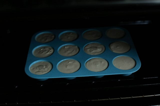 Leg de mini Speculoos cheesecakes in een voorverwarmde oven op 115 ℃ voor 22-25 minuten. Schakel de oven uit en laat de mini cheesecakes langzaam op temperatuur komen (laat ze in de oven). Doe dit met de ovendeur dicht, zo voorkom je dat de cheesecakes barsten. Ik laat de cheesecakes meestal een uur in de oven, daarna leg ik ze afgedekt in de koelkast. |