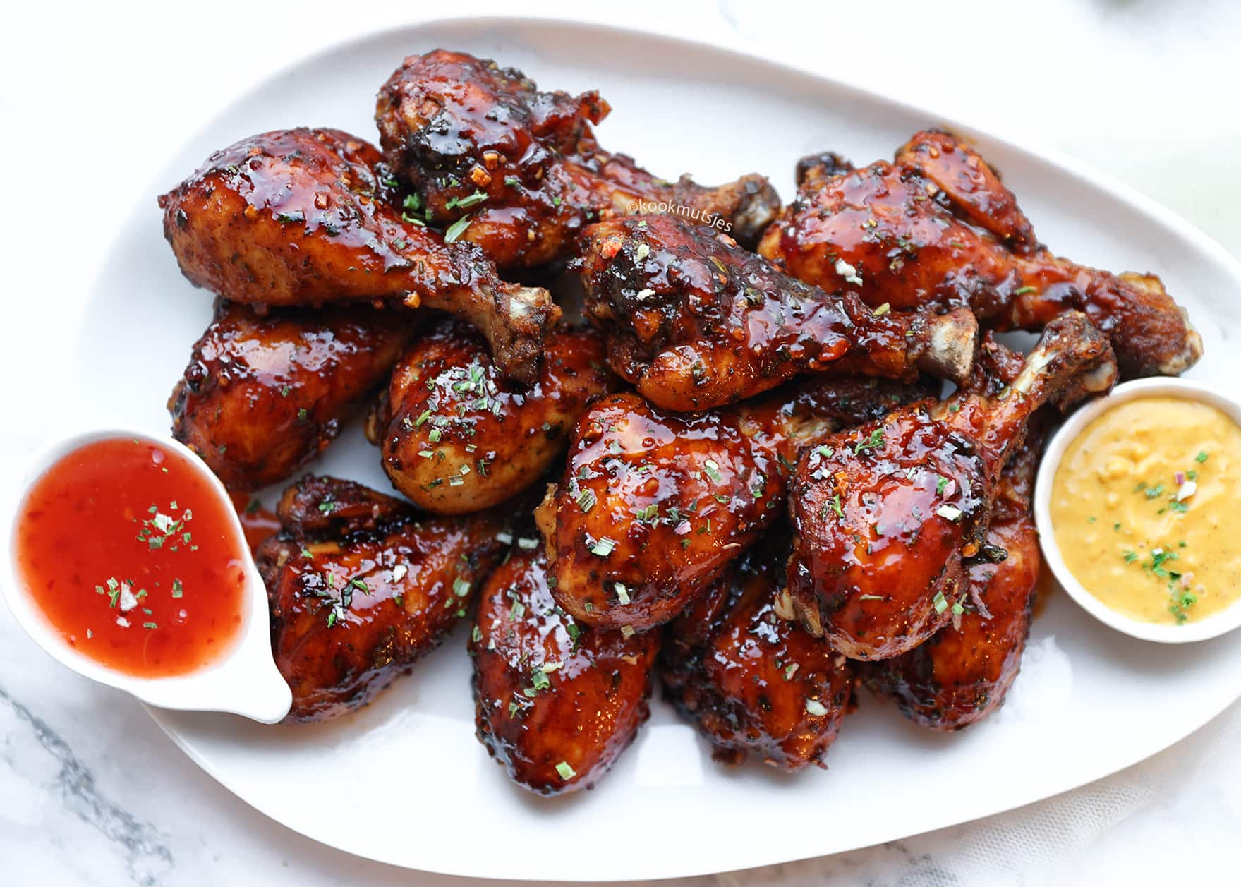 These sticky, flavorful chicken drumsticks are a must-try for anyone who loves bold, savory-sweet flavors. Coated in a rich blend of sweet soy sauce, chili sauce, honey, and sambal, the chicken gets beautifully caramelized in the oven, creating a deliciously sticky glaze. The ras el kouzina and chicken seasoning give the drumsticks a warm, spiced base that perfectly complements the sticky sauce. This easy-to-make dish is perfect for weeknight dinners or casual gatherings, and is sure to be a hit with family and friends.