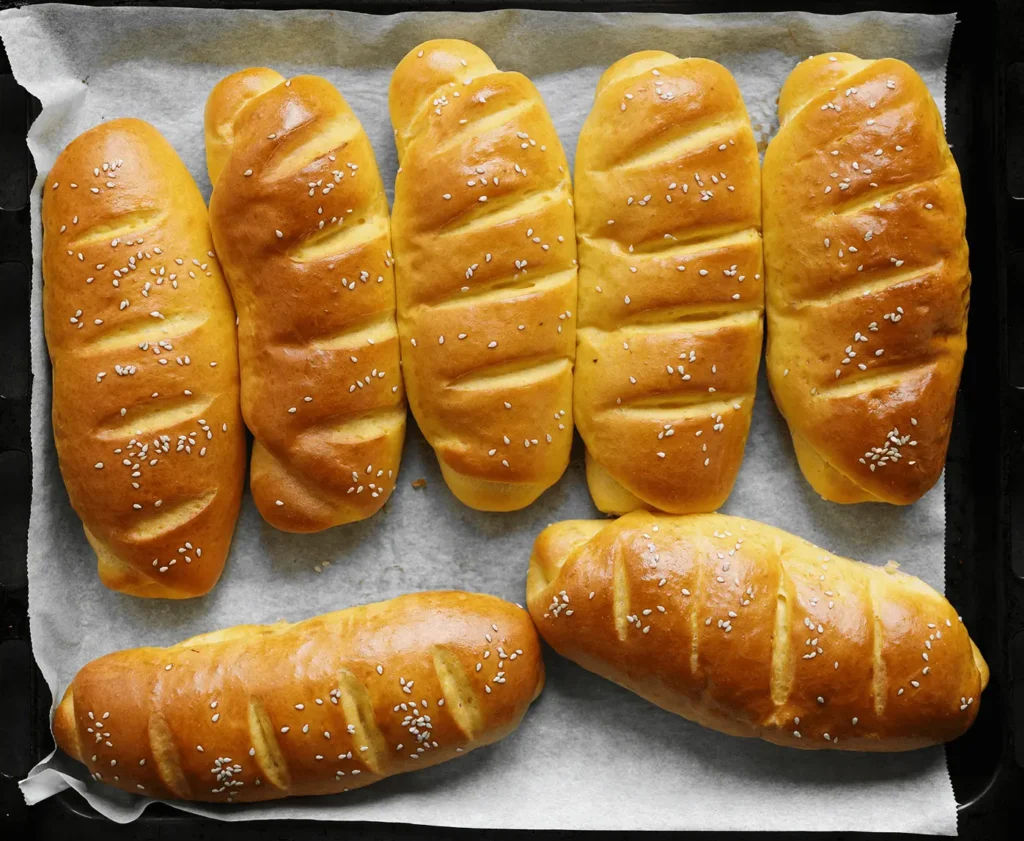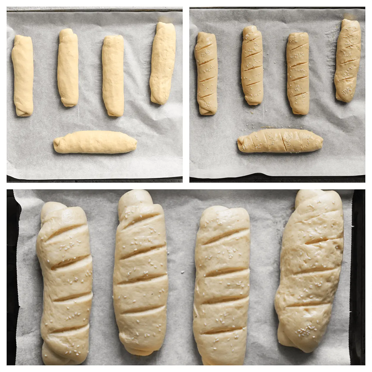 Plaats de broodjes op een bakplaat met bakpapier om te voorkomen dat ze aan de bakplaat blijven plakken.