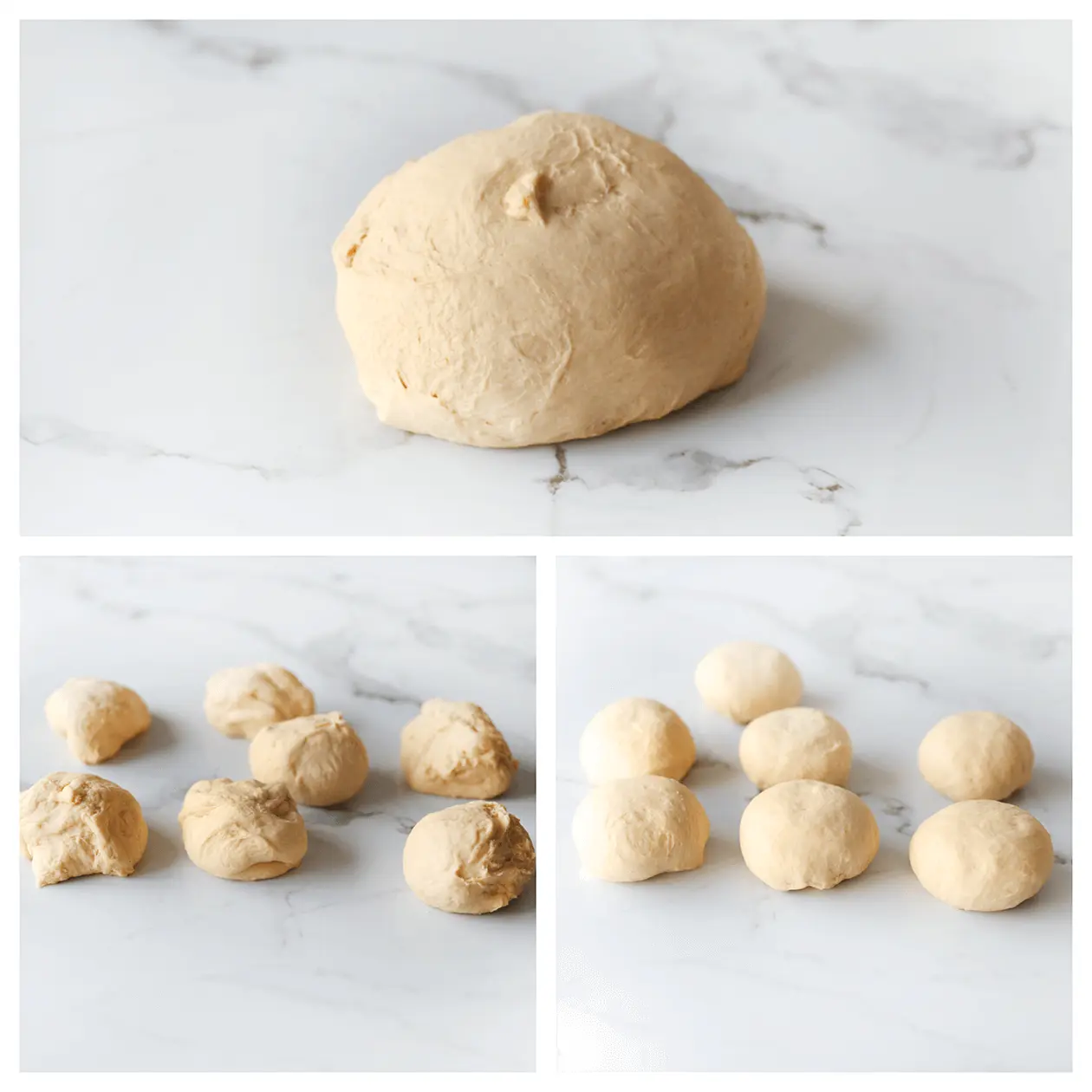 Bij het verdelen van het deeg in 7 stukken, probeer ze zo gelijk mogelijk te maken, zodat de broodjes gelijkmatig bakken en hetzelfde formaat krijgen.