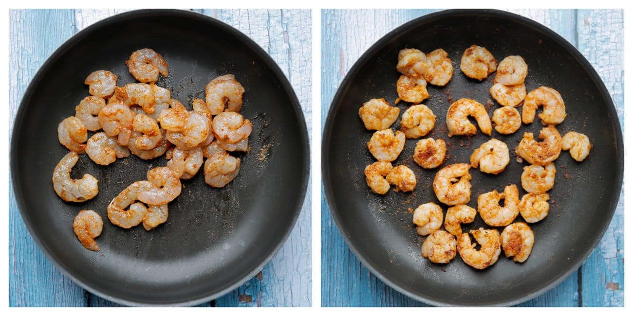 Doe de garnalen in een koekenpan en bak in een paar minuten gaar op middelhoog vuur.