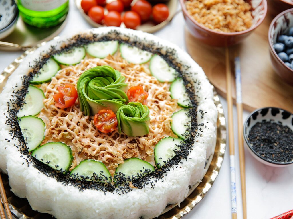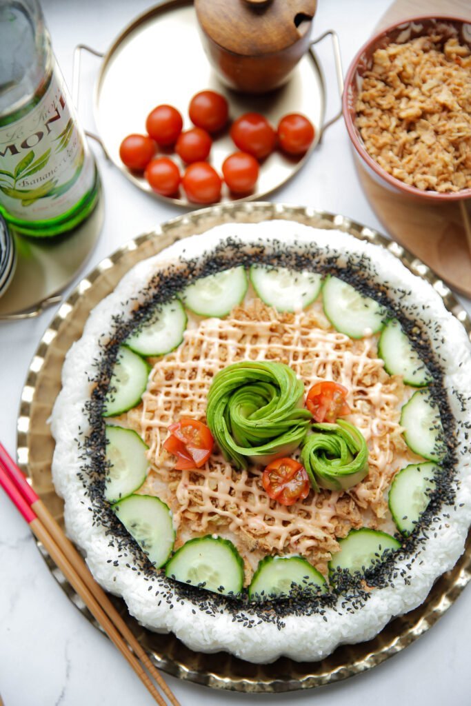 Ja, je leest het goed. Een sushitaart! Bij nader inzien misschien niet eens zo een gekke gedachte. Taart + sushi = feest + feest. Daarbij is het ook nog eens een gezonder alternatief voor de gebruikelijke, met room gevulde, taarten terwijl deze (sushitaart) minstens zo lekker en makkelijk is. Meshiagare!