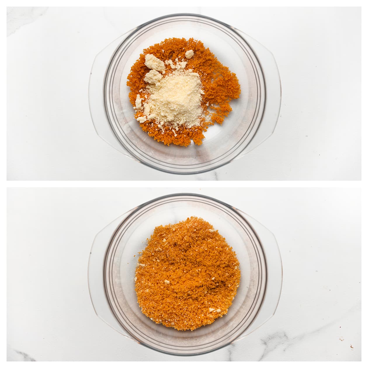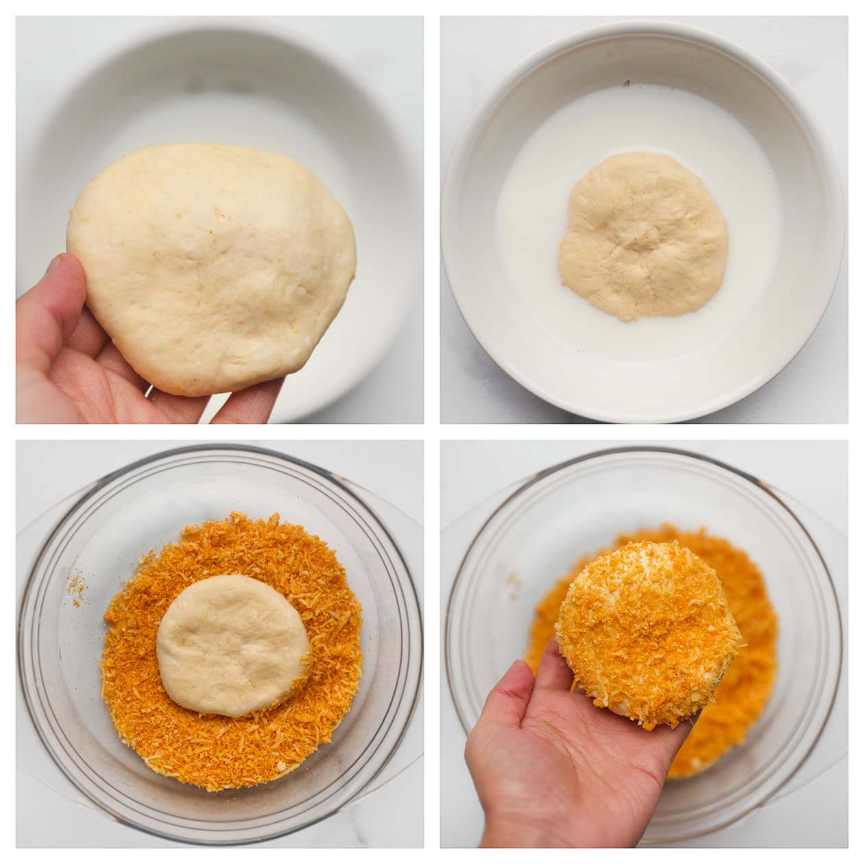 Werk snel wanneer je de broodjes door de melk en chipsmengsel haalt, zodat het mengsel goed blijft plakken. Druk de topping lichtjes aan als het niet goed hecht.