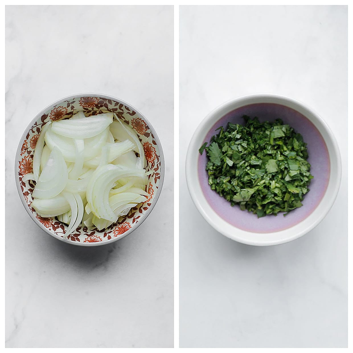 Voeg de saus toe aan de gekarameliseerde ui. Verdeel de gehaktballen en de overige koriander (10 gr). Breng aan de kook. Zet het vuur nu weer laag en kook, afgedekt, 20-25 minuten. Is de jus waterig? Haal de deksel van de tajine en kook op hoog vuur. Blijf er wel bij staan, want het vocht verdampt. |