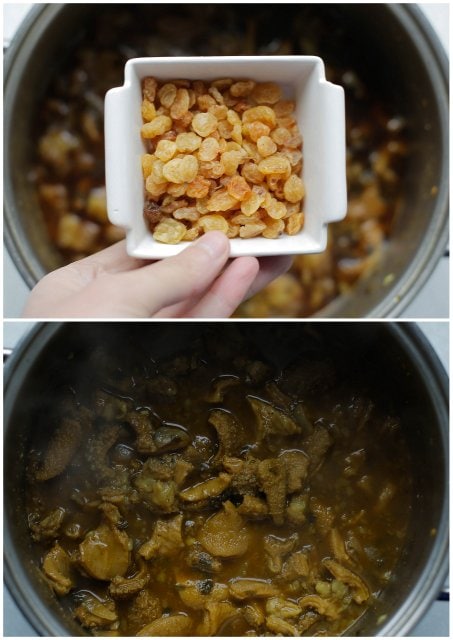 Je kunt de kikkererwten samen met de rozijnen toevoegen. Houd je van een wat stevigere bite, dan kun je de kikkererwten de laatste 10 minuten toevoegen. Succes!