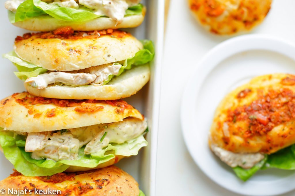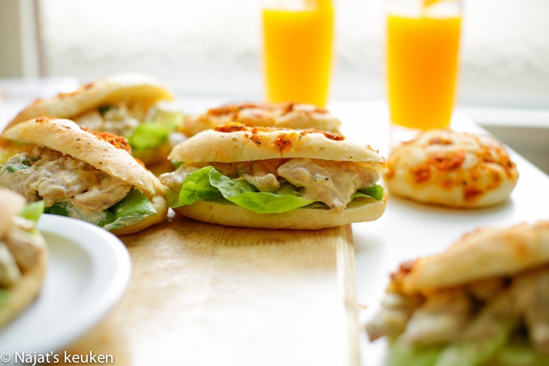 – Vul de broodjes met kip, gehakt, vis of andere beleg naar keuze.