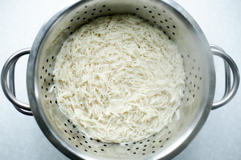 Giet de vermicelli in een vergiet en laat het water uitlekken.