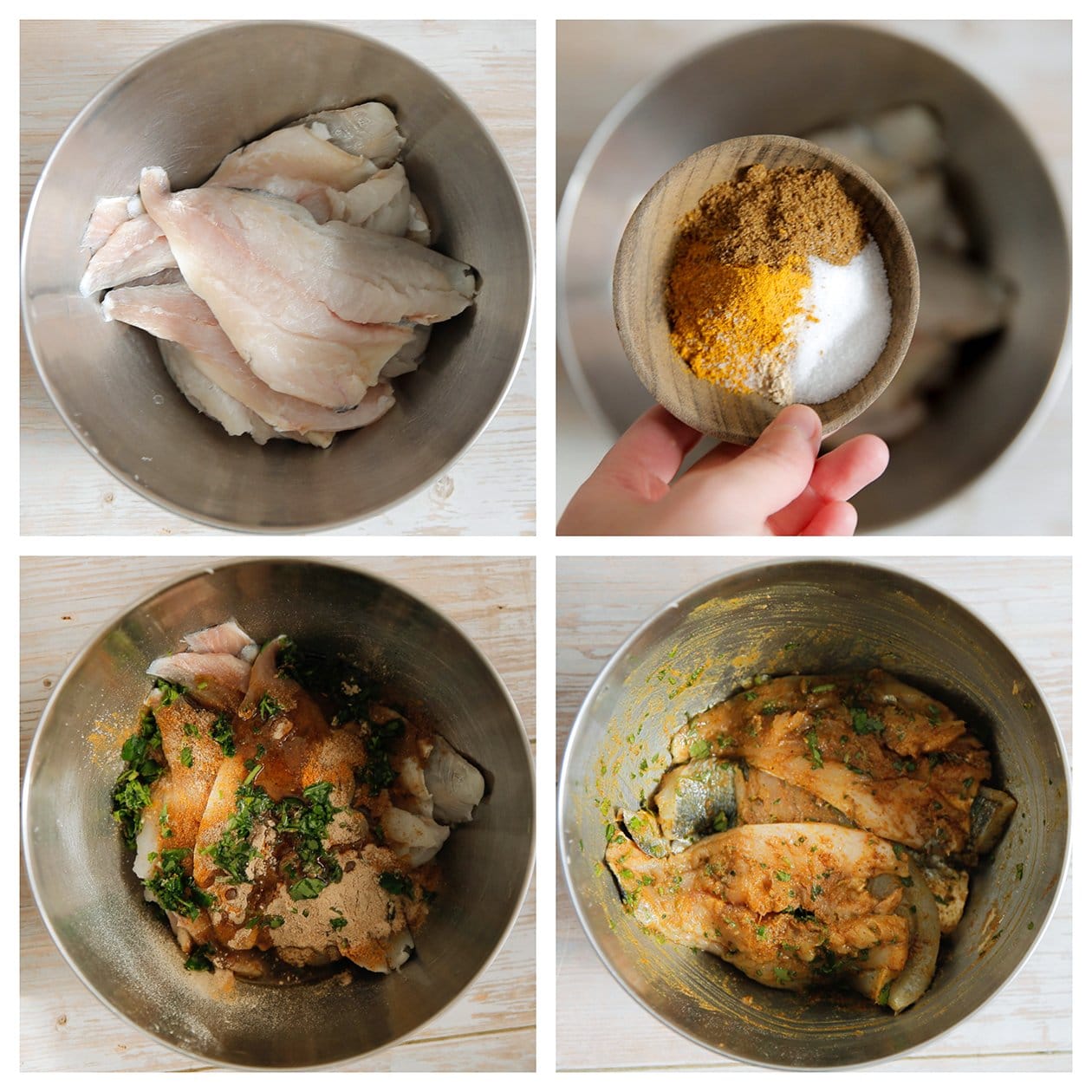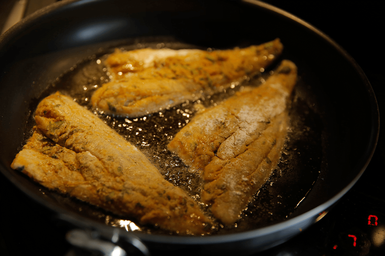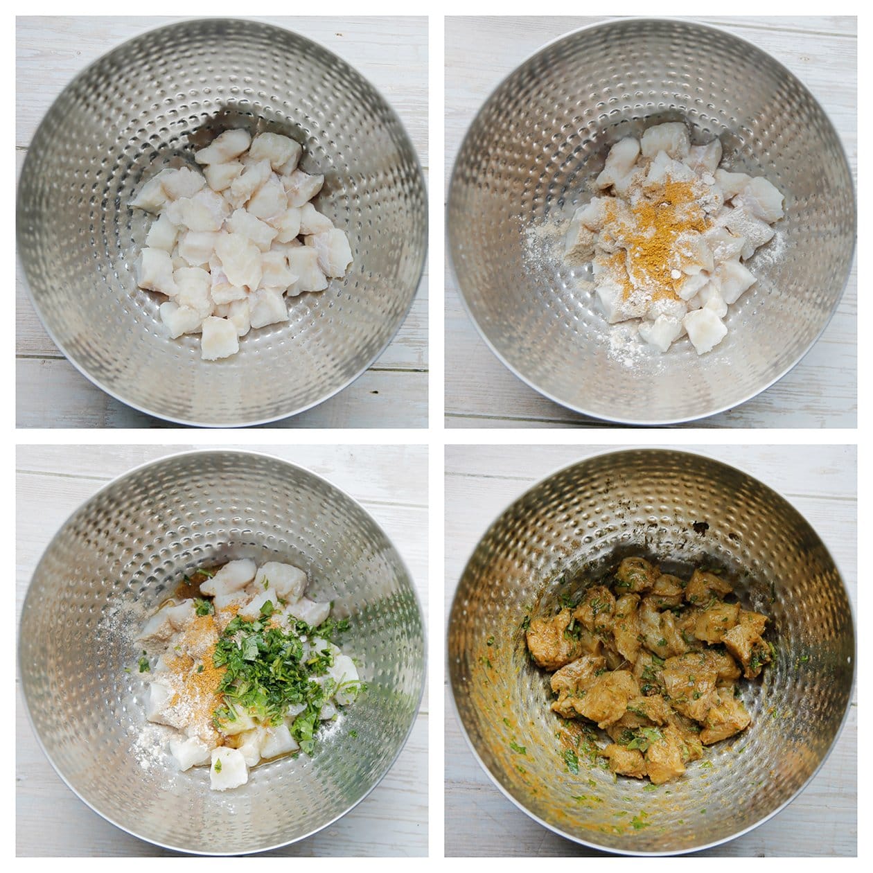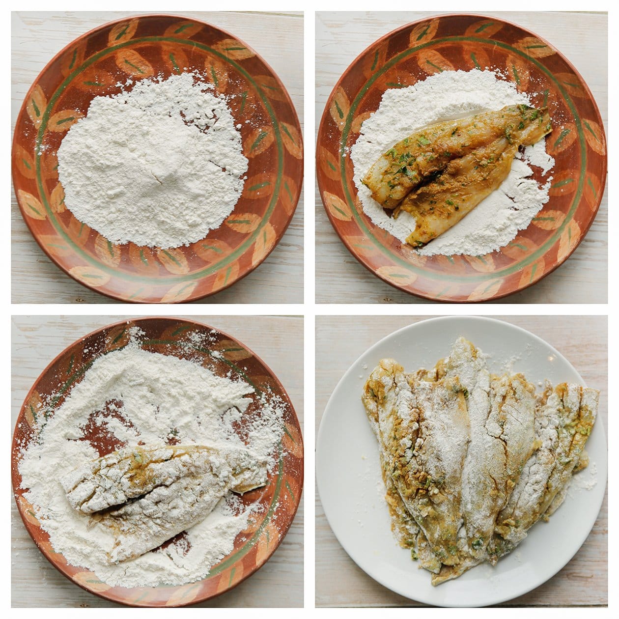 – Haal de kabeljauwburgers en goudbaars vlak voor het bakken door de bloem.