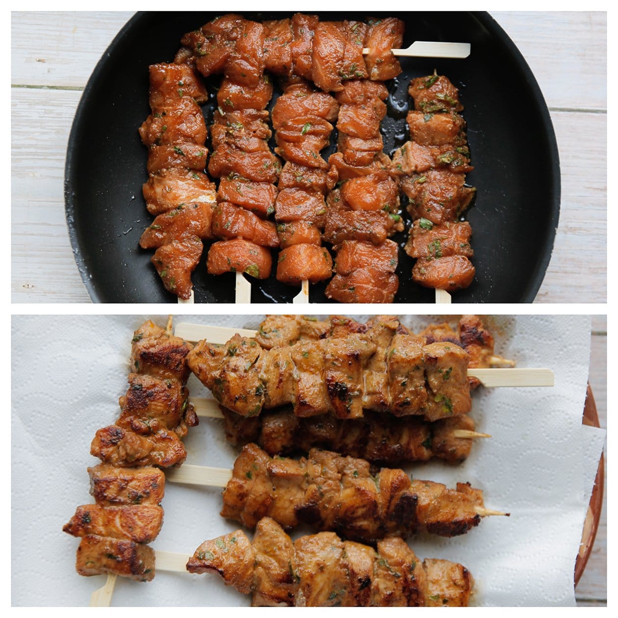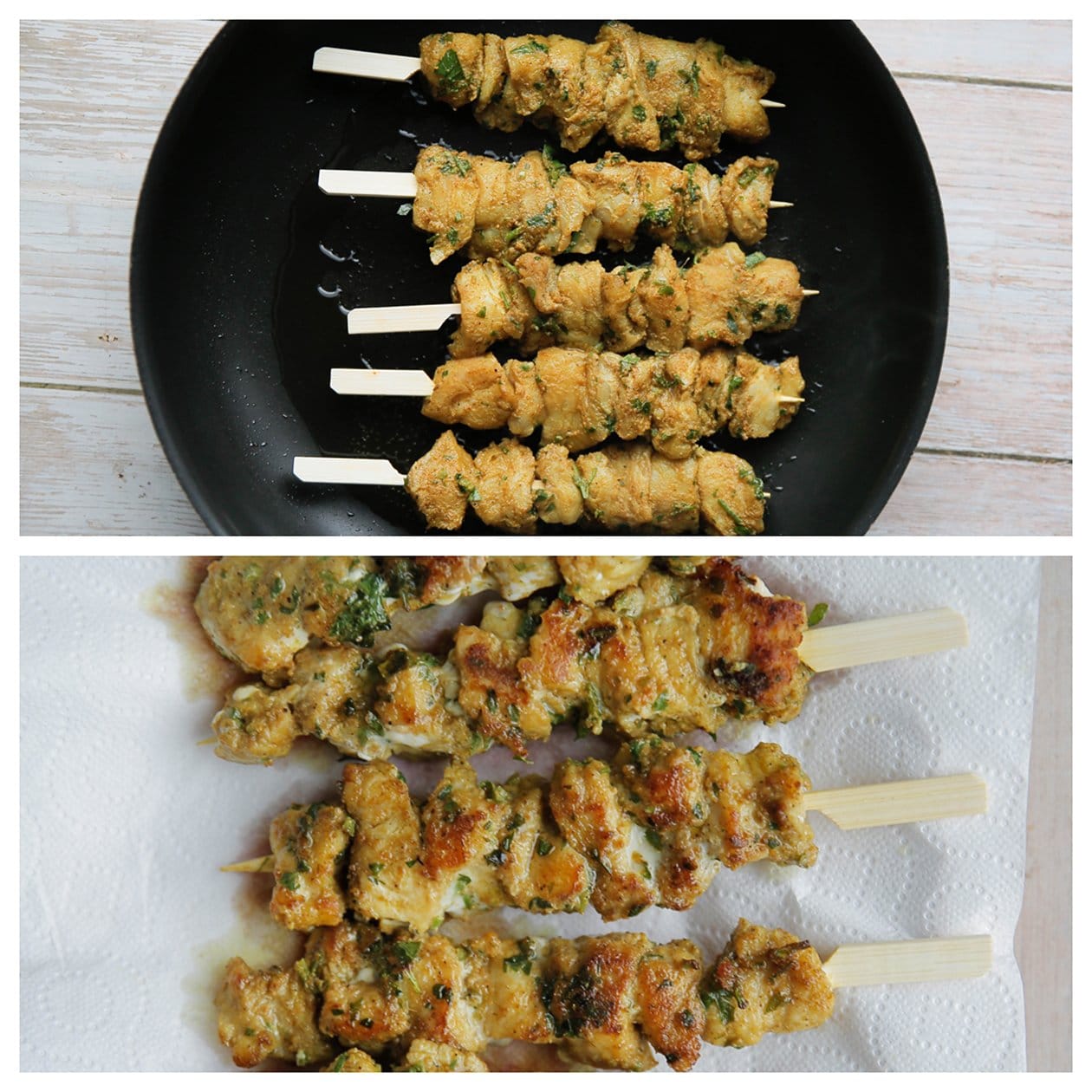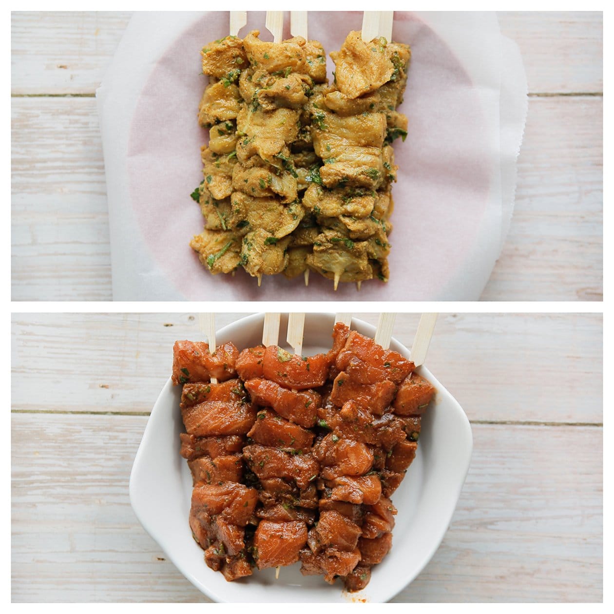 – Doe wat chilisaus en ketjap manis in een kom, meng goed en smeer deze uit over de zalmspiesjes. Zo maak het het lekker smeuïg.