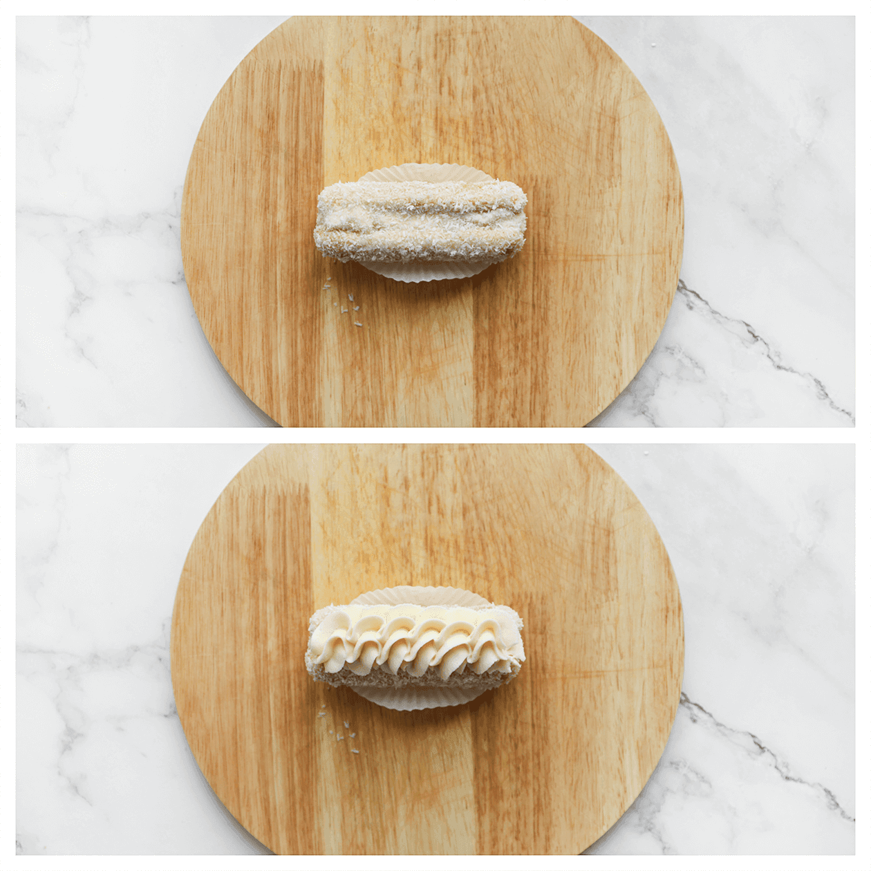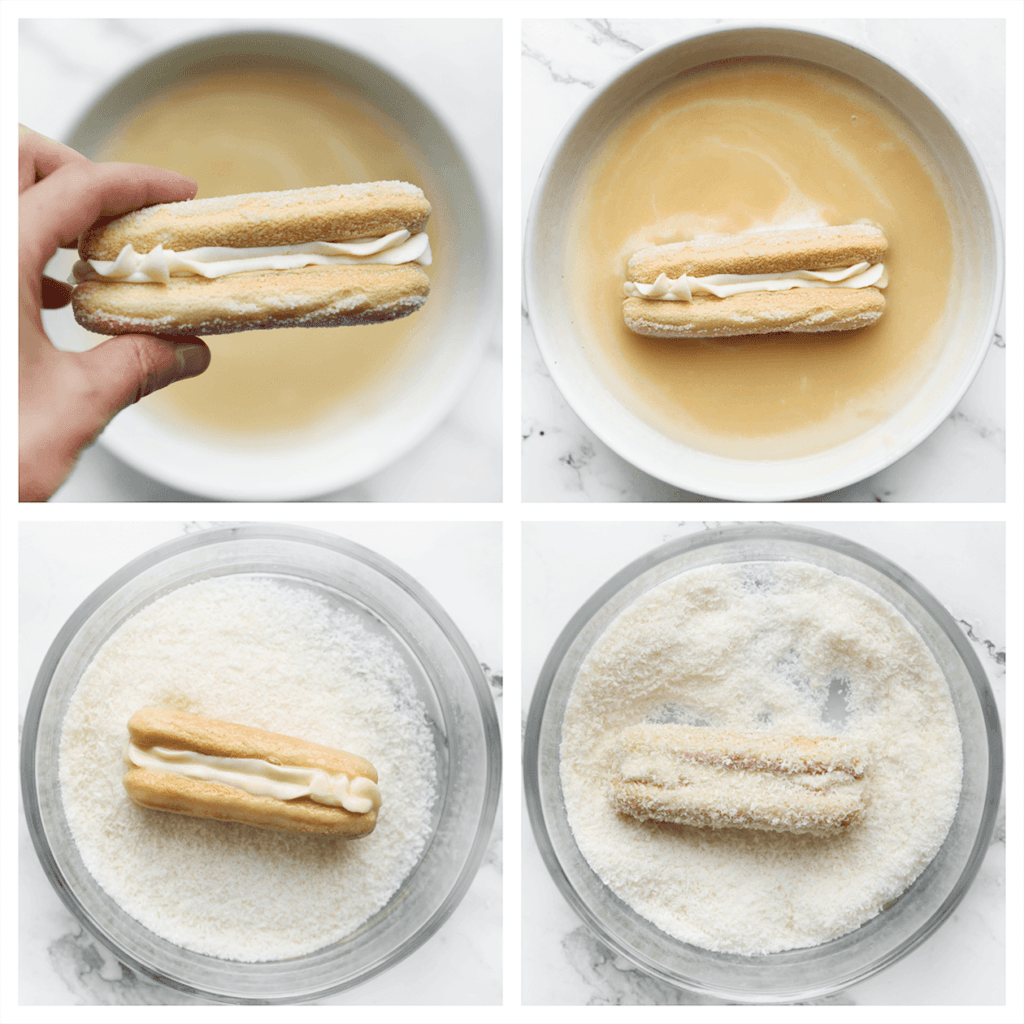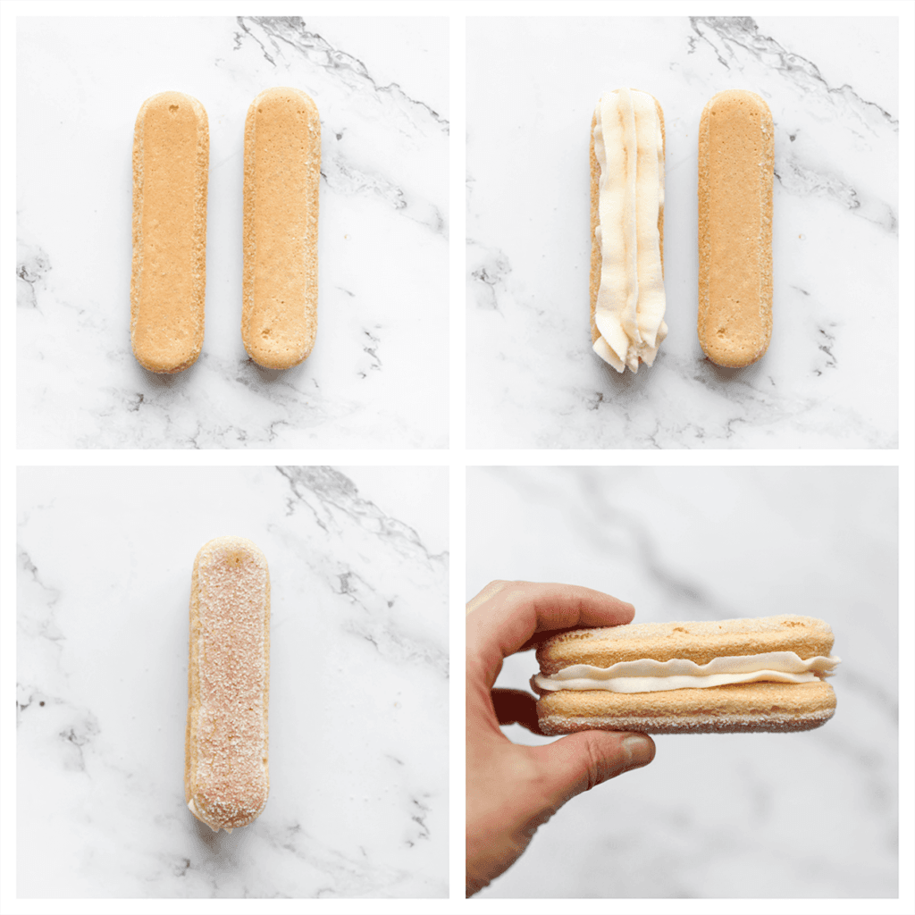 Use a piping bag to easily place the cream onto the ladyfingers. If you don’t have a piping bag, you can use a sandwich bag and snip off a corner.