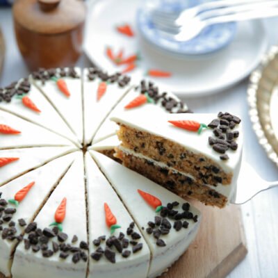 Werk de worteltaart af met een heerlijke topping en geniet ervan met een kop koffie of thee!