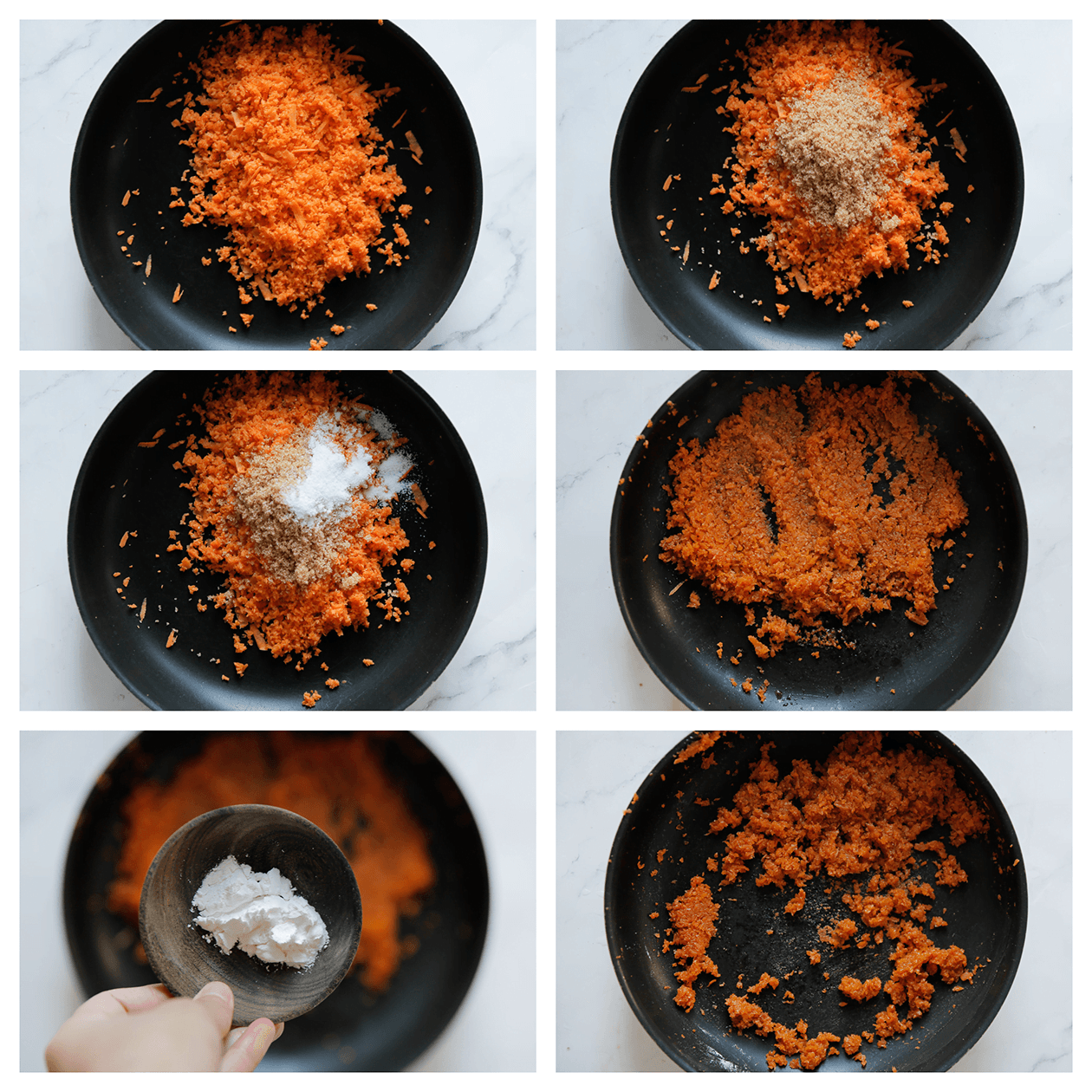 Schil en rasp de wortel. Hak de walnoten klein. |