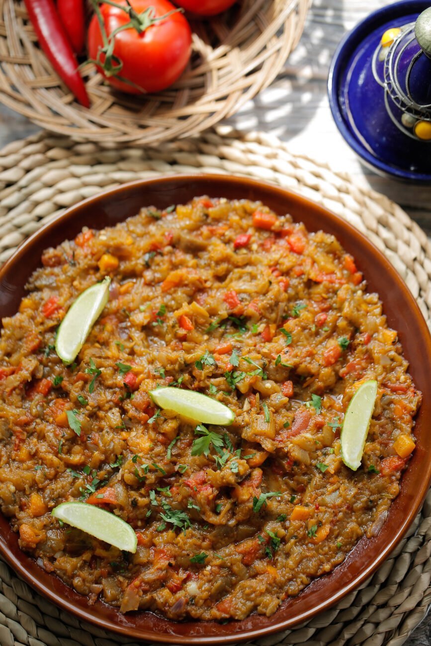 Zaalouk is een heerlijke gekookte auberginesalade met zoveel lekkers! Het is een van mijn favoriet en een veel voorkomend bijgerecht in de Marokkaanse keuken. Het is zo lekker en wordt vaak vergezeld met tajines, vlees- en visgerechten.