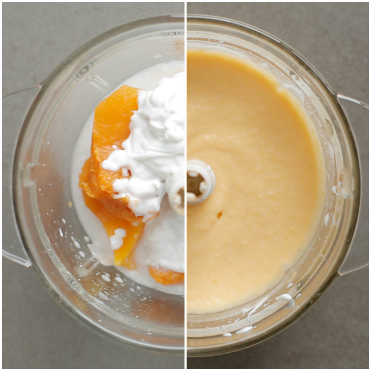 Schil de flespompoen en snijd in stukken. Breng de flespompoen in een pan met water aan de kook. Kook in ca. 15 minuten zacht. |